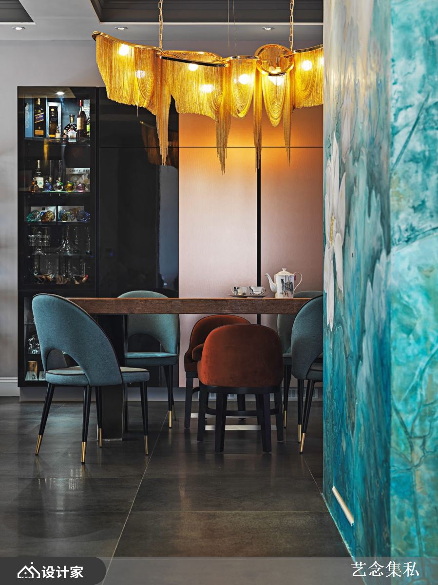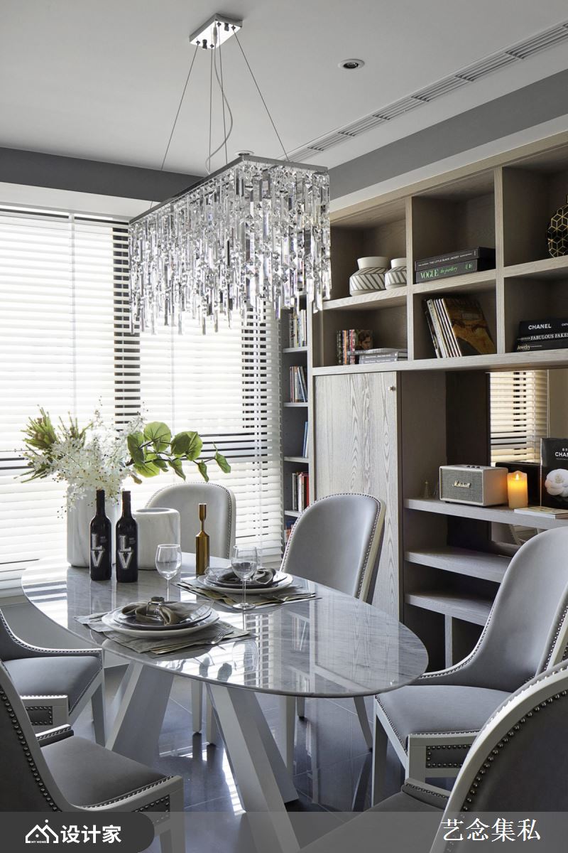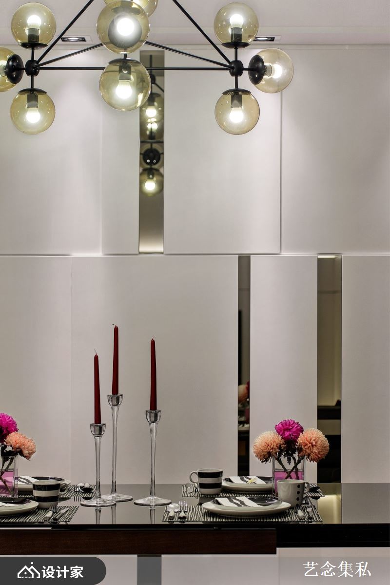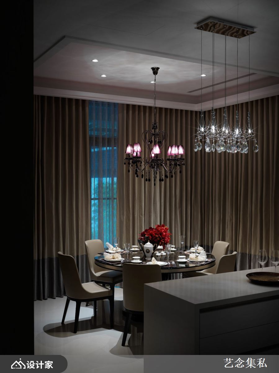 充满都会质感的水晶吊灯或造型灯具,搭配精心布置的花艺植栽、餐巾、桌垫、餐盘瓷器等,齐全而别致的规划更能凸显用餐时刻的 "仪式感",使家人们能静静享受属于全家人的用餐过程,不必总是喧哗热络,一句关心生活的话语、述说一件今日发生的所见所闻或趣事,皆是替家庭增温的暖心环节。吊灯将光线聚焦在餐桌料理上,使人更能细细品味每一道家庭料理的个中滋味,此时此刻,是属于家人的天伦之乐。