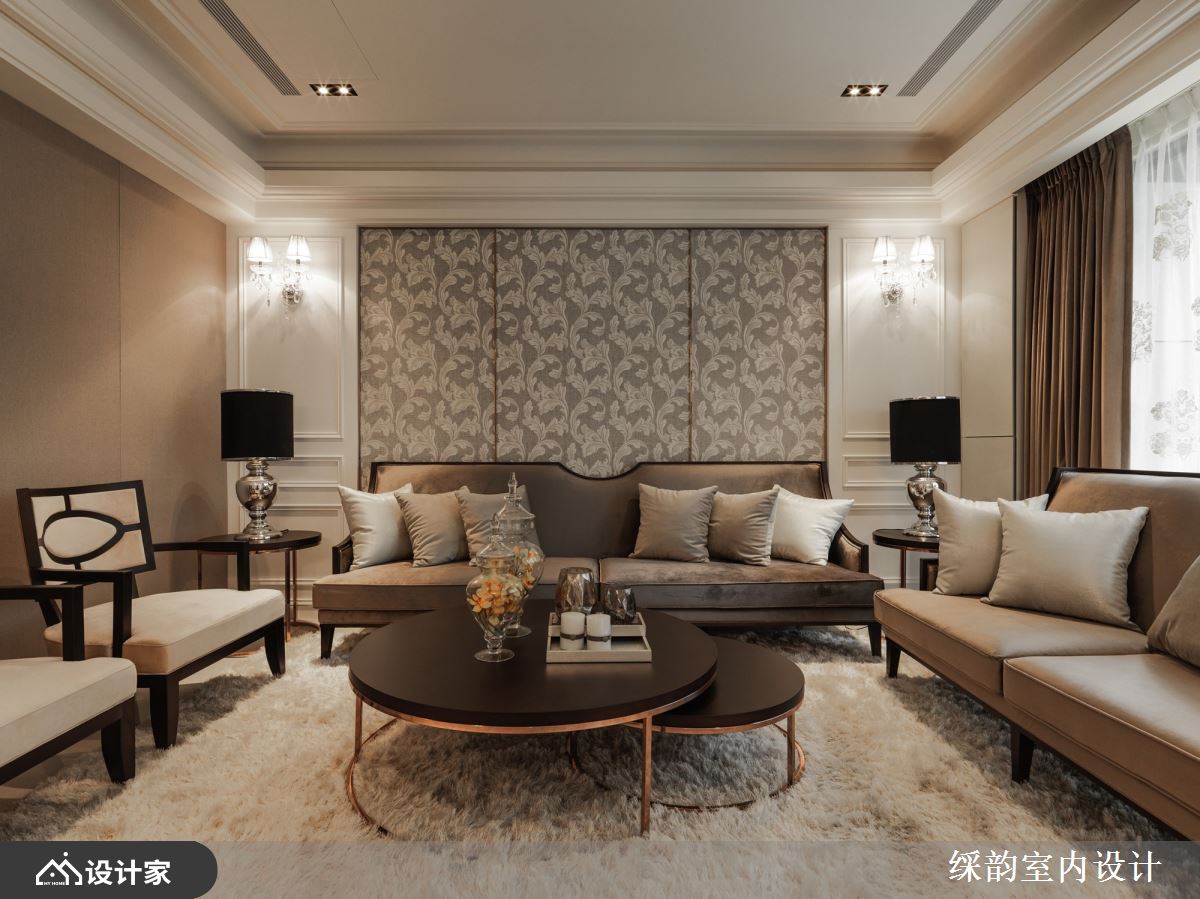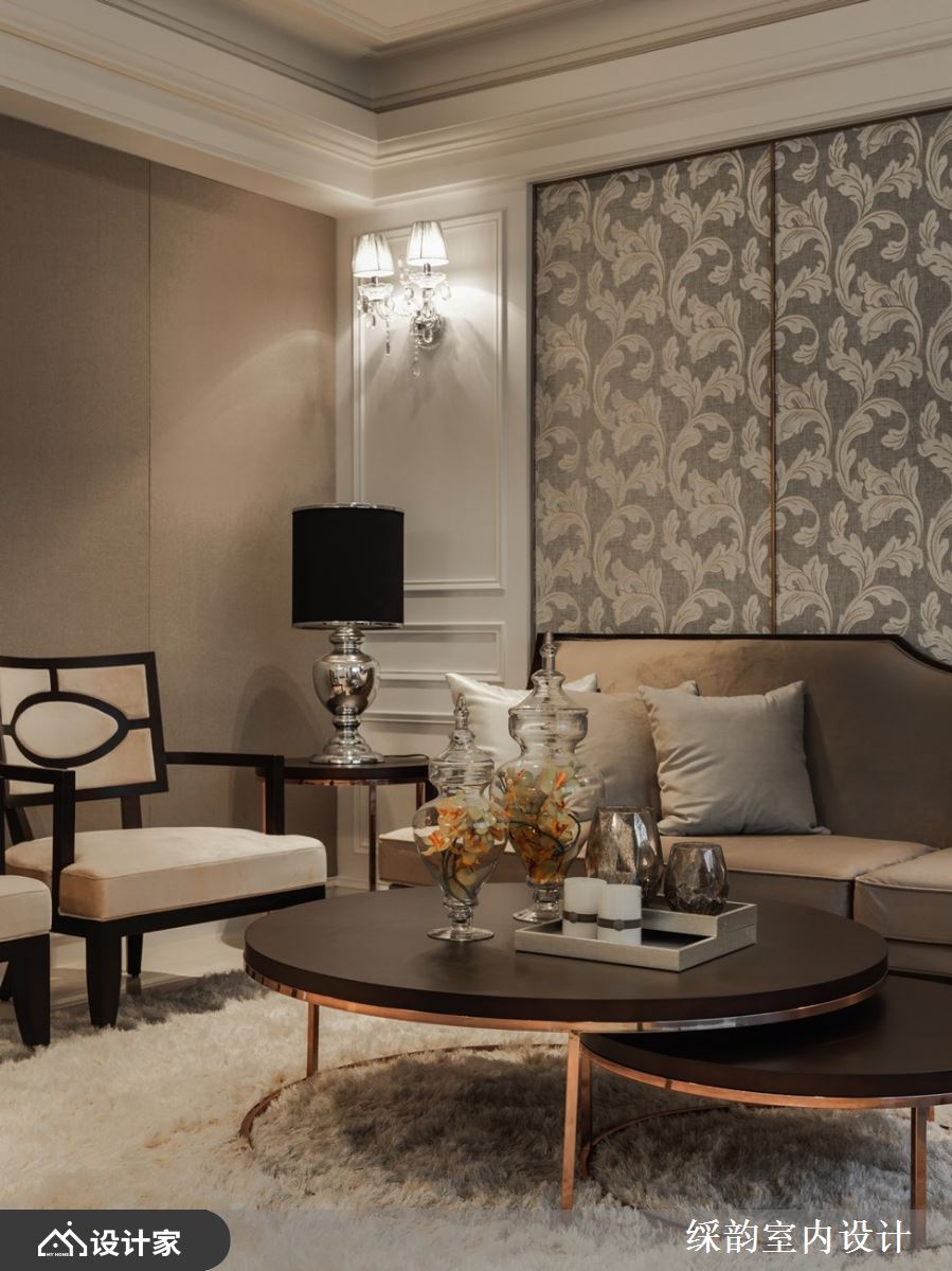 觉得欧式古典风格过于高调奢华吗?看䌽韵室内设计运用内敛简约的大地色系营造静谧宜居,在欧洲贵族风范之中揉杂现代底蕴,将繁复线条层次重新梳理,幻化为宁穆尊贵气息。