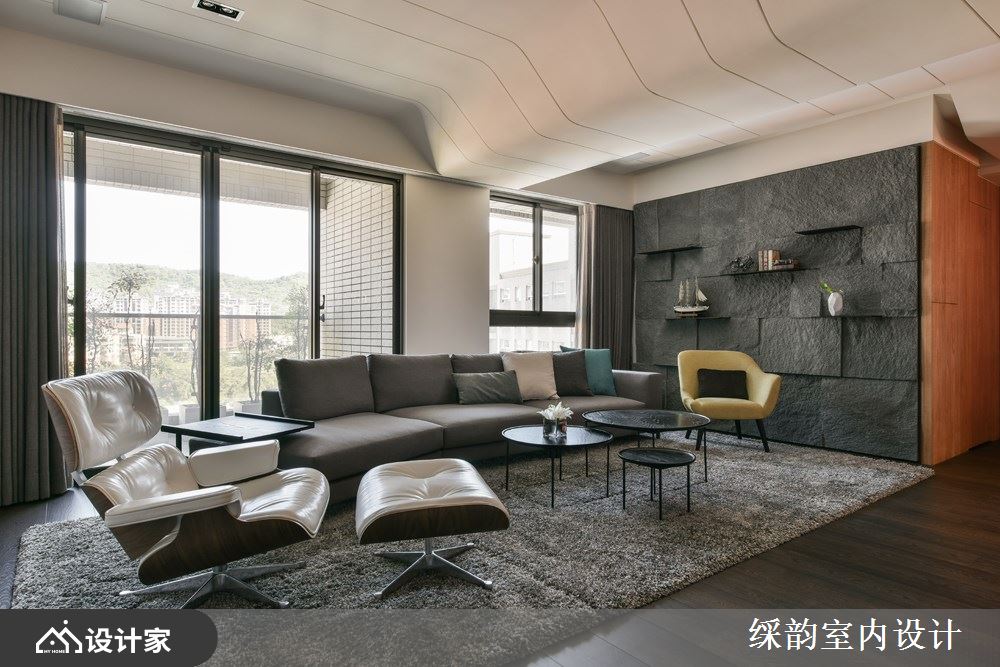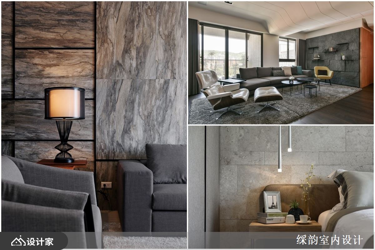 除了灰白相间石纹,也有纯朴粗犷的灰系石板墙面建材,藉由灰色石材酝酿出低调大器的豪宅风范,让室内空间有着独一无二的自然惬意氛围。