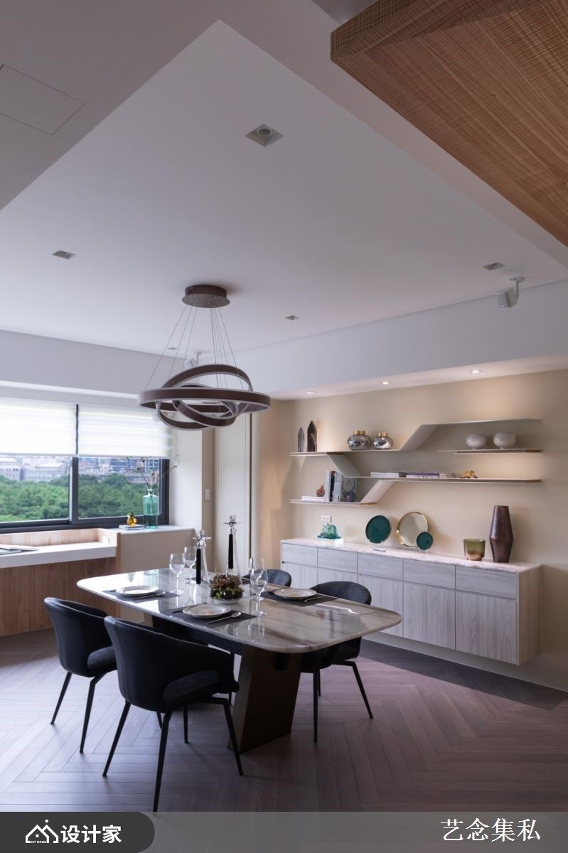 21年前的合作,帮屋主实现拥有家的梦想,更体现家的个性、唤起家族情感,如今因为喜欢一片树海的美景,在市中心的公园旁,购入了一处准备作为退休放松用途的渡假宅,也能成为接待亲友的招待所,让人在繁忙不知尽头的日子里,为自己安排一场放松身心的自在和温暖体验。通过设计师量身订制、异材质整合后的精致呈现,创作出休闲渡假的情境氛围,入住后不再需要Check Out,让人随时拥有充足的休息。 93平米的老房,因格局破碎、动线不佳等状态,让阳光无法敞朗的进入空间,因此屋主希望让一家四口与狗宝贝能拥有宽裕舒适的生活空间之余,加强采光、整合格局及动线、拥有令人悸动的开放式厨房,使休憩渡假的感受长伴左右。 将公共区域原有的隔间拆除、开放式的客餐厅紧密相邻、并特意加大此处的窗户宽度让视野更加宽广,大安森林公园的绿意也自然而然与室内融合,成为无价的框景,同时在临窗区规划具有实用价值的造型飘窗,除了休憩坐卧,加入收纳、书桌、置物等机能,让人可以穿着舒适的居家服,在此处享受杯咖啡和一本好书,完全不需要担心别人的眼光,拥抱属于自己的渡假时光。