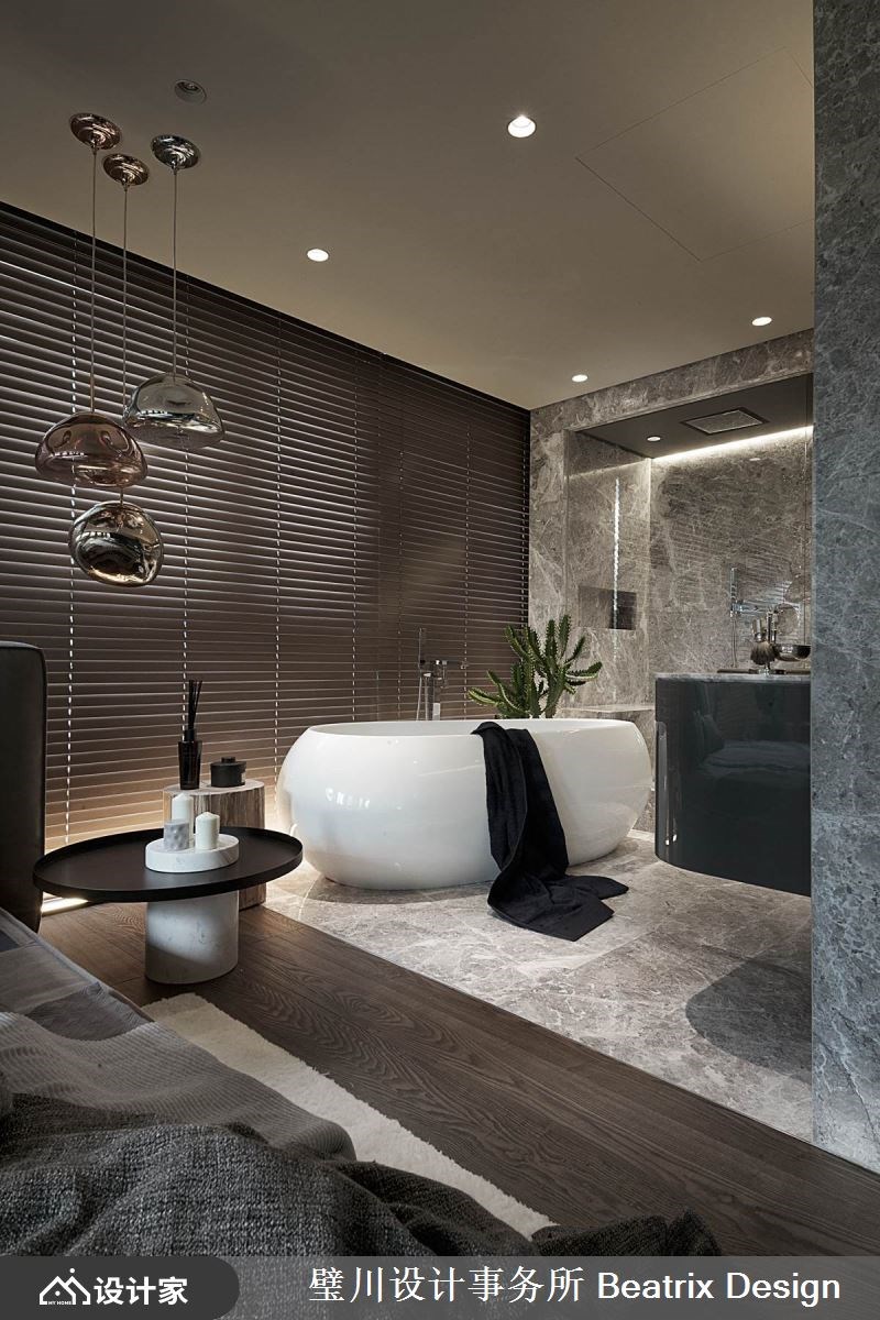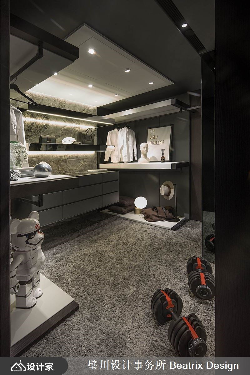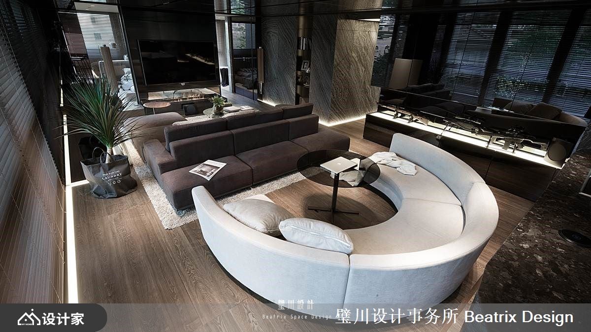 年轻的单身贵族喜欢邀请三五好友来家里相聚,设计师以此启发灵感,移植美国纽约上城区Penthouse的概念,加上游艇设计的元素,为业主实现心中想望。 【融入游艇概念,塑造开阔迎宾客厅】 在格局上植入Penthouse及游艇的设计概念,开放式的空间开阔视野,客厅区分别为视频、沙龙两个区块,藉由家具的型态及摆放方式,引导人的行为模式,同时让此区得以容纳更多人数,成为迎宾宴客的中心。 在弧形沙发后方,摆放上宛如游艇型态的中岛吧台及蒸烤箱等家电,让下厨也能成为一种表演,串联人与人的情感。主卧室位于电视墙后方,和三分离的卫浴开放相邻,宛如五星级酒店的规划,同时赋予居住者度假般的悠闲享受。 在建材的使用上,以海岛型木地板铺叙整室,大理石材、铁件、黑色玻璃、皮革及钢琴烤漆,层次分明地彼此交融,使整体场域虽以灰色为基调,仍能在最小的方寸间赋予最大的细节。 小编的最爱 在走廊尽头处,利用畸零空间安排了靠窗的阅读区,成为这个家中的小绿洲,也为整体画面划下丰富的景致。
