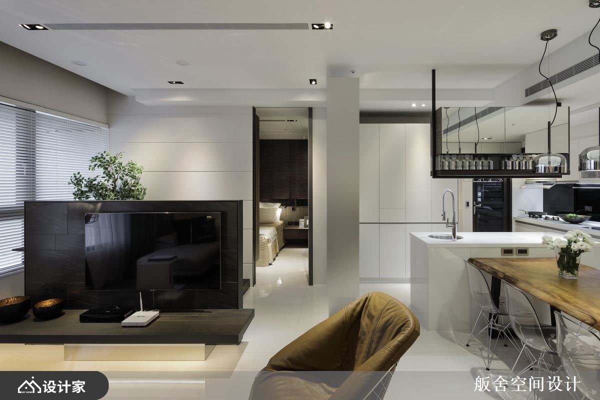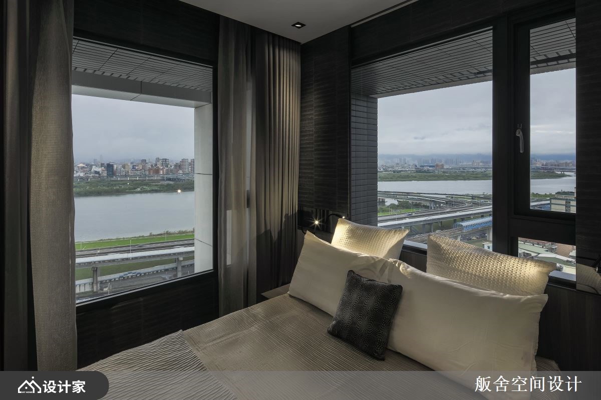 随着孩子已经长大,66平米现代风小宅的屋主夫妻,希望四处奔波的生活能有个落脚之处,因此他们选定这间面向河景的住宅,并找来细心的设计师操刀,期盼人生下半场能享受两人的舒适时光。 【减少居室数量,迎接开阔景致】 起先居家为三居室的格局,设计师考虑平常只有两人使用,多余的居室反而会造成空间的狭窄感,因此在与业主沟通之后,决定只留下一间主卧,其他空间则释放给公领域利用,使室内看起来更加开阔,同时又不会因为过多的隔断,阻挡窗外的美好景致,浪费小宅所处的地理优势。 客厅与书房采取半高的双面隔断,一面是电视墙,另一面则是书桌,线条简约的设计,不会造成视觉的负担。书房选择架高地板的方式,加上形成空间转折的大书柜,让男主人拥有一处放松阅读的场所,小孩来访也能充当客房。餐厨空间结合中岛与大餐桌,给女主人开放式的梦想厨房,心情好了,自然能端出一道道好菜。 小编的最爱 主卧保留两面开窗,除了可以拥有丰富的采光以外,也能沉浸于辽阔的城市视野,让夫妻体会高雅酒店的生活气质。