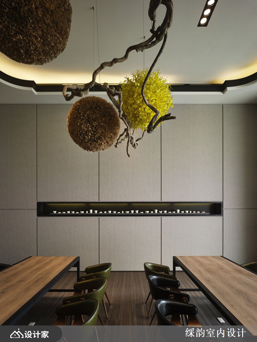 能够踏进豪宅别墅的售楼处,几乎是讲究生活质量的人们,他们长期接受不同文化的熏陶、时尚广为涉略以及多元美学的追求,因此䌽韵设计在售楼中心里透过大尺度空间感延伸设计视野,融入自然共生语汇、光影变化与人文艺术,创造出形而上的精品质感。
