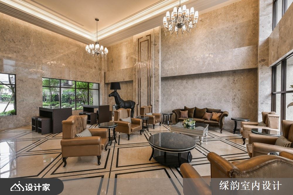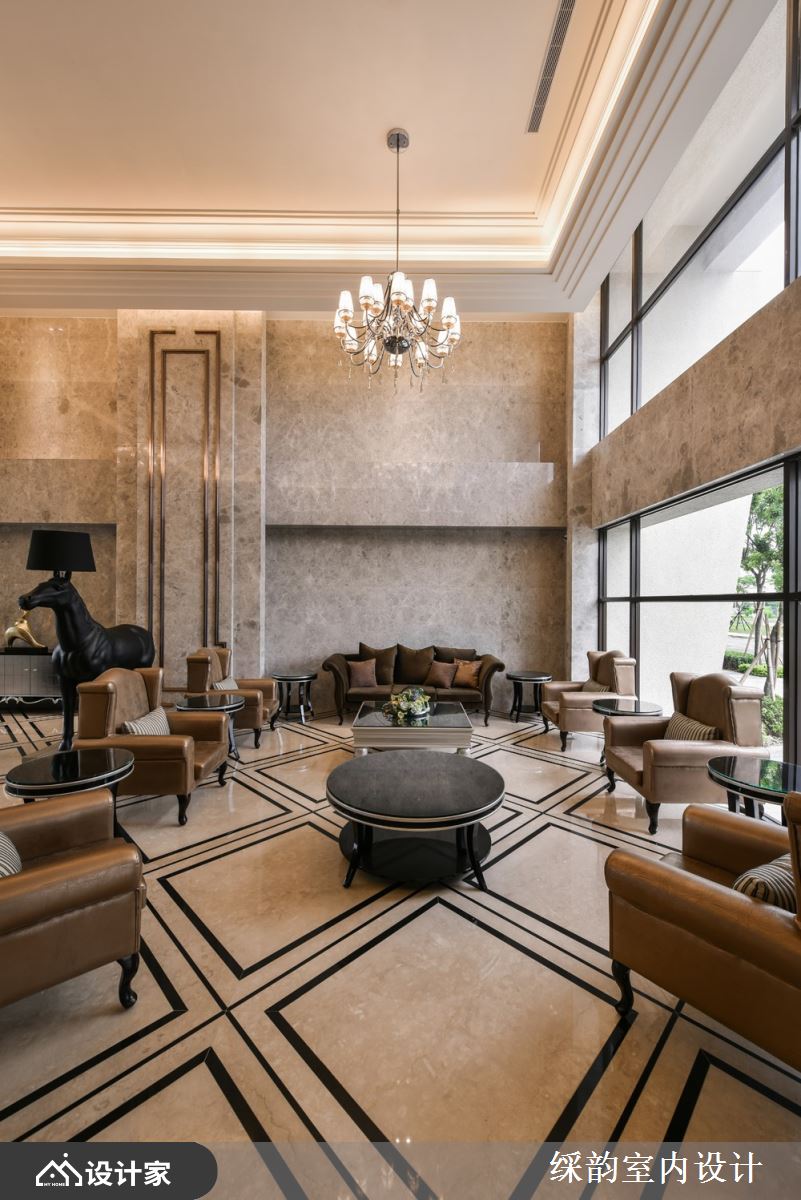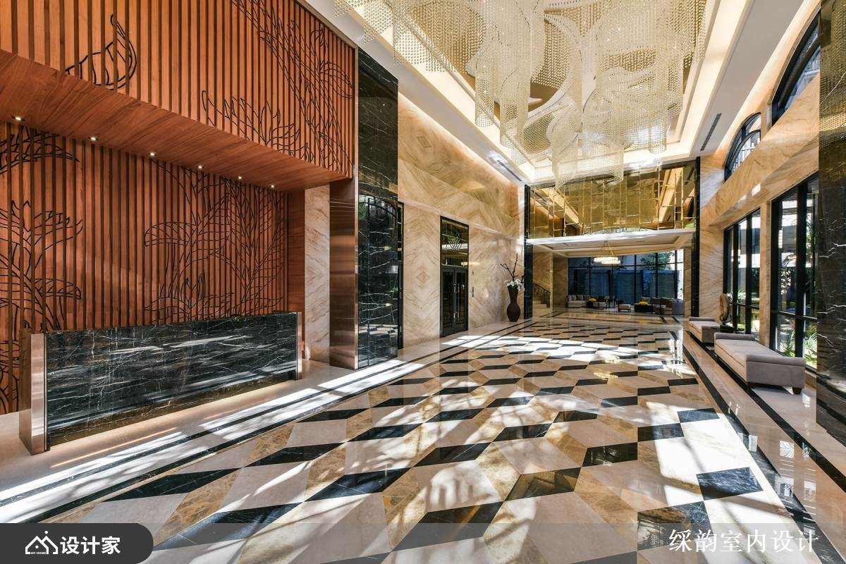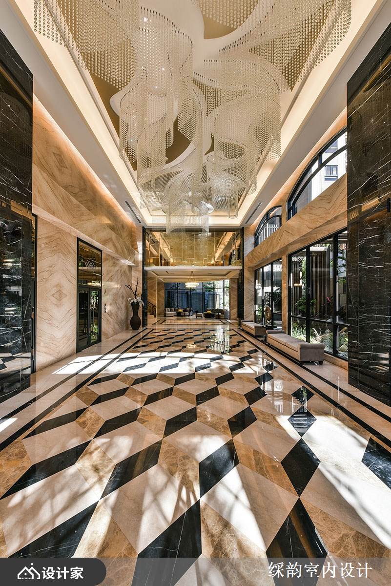 高级豪宅小区的入户大堂极为讲究,为了符合屋主们的尊贵身分与品味,空间主轴在于雍容华美的氛围营造,并且运用光影变化、艺术点缀、高贵建材做出精致完美的空间美学。一起来看看䌽韵设计是如何精心打造五星级大堂大厅,呈现气势万钧的绝美底蕴: