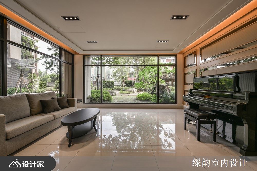 充满欧式古典情韵的水晶玻璃吊灯,搭配多层次的天花板线板与墙面镀钛金属,诠释现代都会气质与古典欧式风格的巧妙结合,另外更挑选荷兰前卫家具品牌 moooi 的黑马立灯,替大堂空间妆点艺术人文情韵,使得整体空间更有古今交迭的崭新意境。除此之外,更有诸多多功能空间,像是拥有绿意园林景观的练琴房、大型中岛厨房,以及摩登时尚黑的KTV娱乐室等。