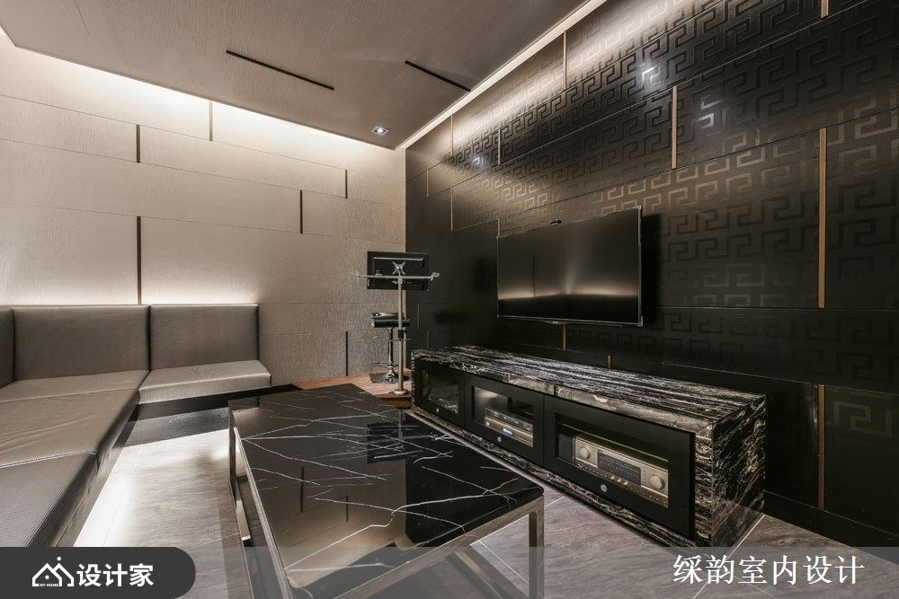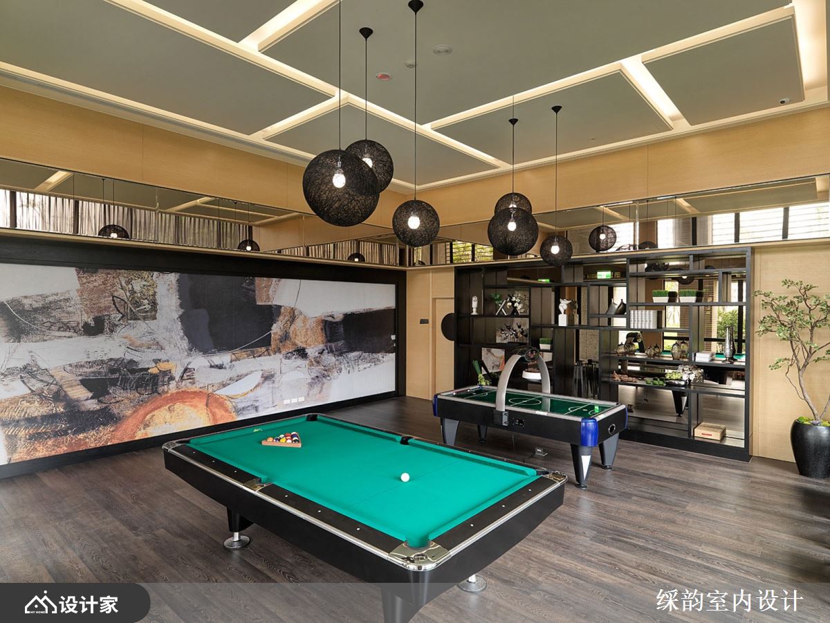 大堂运用金属隔栅搭配黑白双色几何图案,多层线板与间接照明交织成层次光感,透过大理石墙面反射光线后,厅堂更显雍容贵气;多人座位区以镜面墙作为现代都会质感的风格意象,更为内部的休闲娱乐区如撞球室、健身房则运用深色木质调作为放松惬意的机能调性。