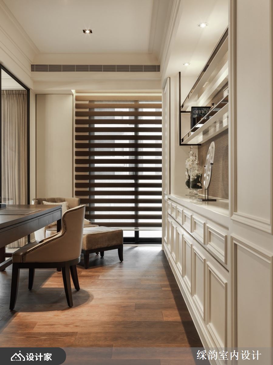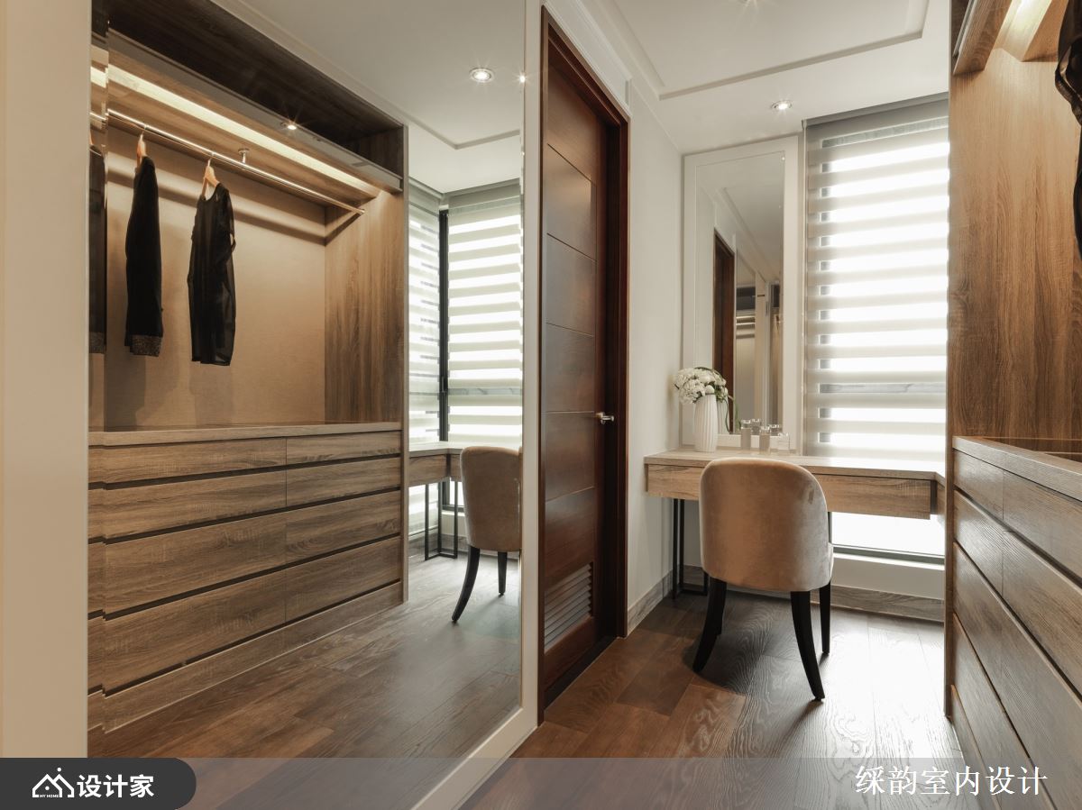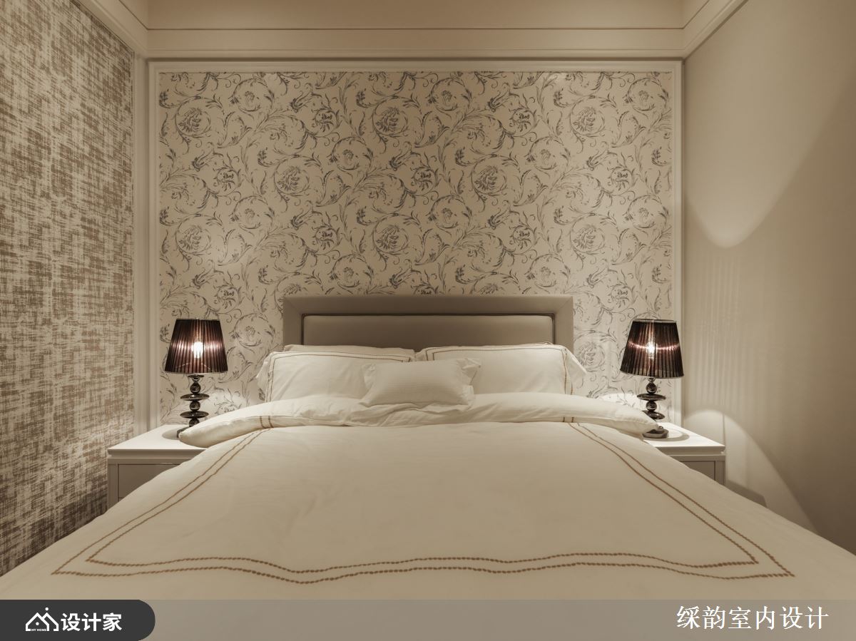 在私领域空间部分,䌽韵设计刻意选用大地色系作为主轴,巧妙连结深色木地板的自然意境与暖心气氛,并以法式古典风格勾勒卧房空间美学,像是主卧的绷布床头墙,菱格造型更诠释出时尚风韵;另外两房则分别以栗棕色调的木质感、纯白色调为主,营造温暖舒适的私人场域空间,让每一位家人都能好好享受专属于自己的沉淀时光。