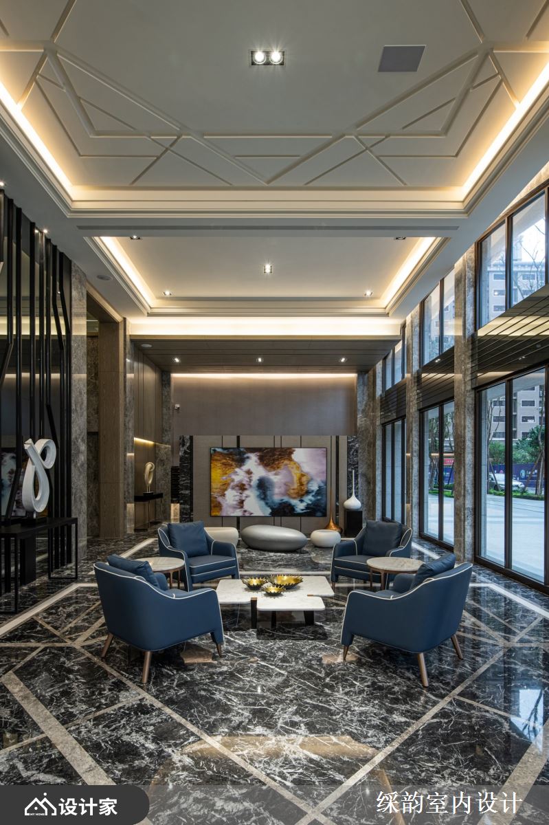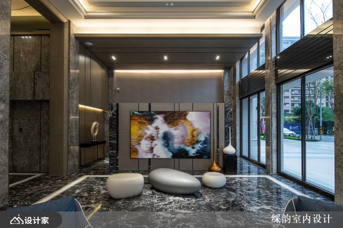 本案是豪宅小区的大堂空间,䌽韵设计透过磅礡石材、温润木质及高贵金属等异建材行云流水地切换,构筑出雅致大堂、人文健身中心、儿童图书室与交谊空间等丰富空间景象,且将生活机能与高端品味融合得恰当好处,展现奢华器度的豪宅底蕴。