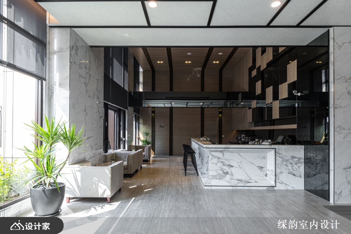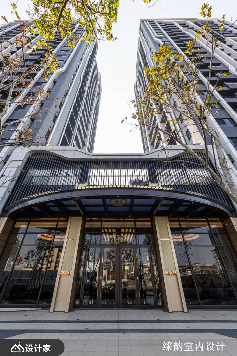 高端小区里处处是奢华豪宅,因此入户大堂的空间,需与之遥望呼应,让豪宅屋主们的高雅品味得以延伸展现。在室内设计的语汇里,䌽韵设计善于规划大尺度的空间场域,在此案近 1000 平方米的大堂中,藉由建材的转化与巧思,优雅轻巧地营造磅礡大势,呈现令人欣羡的旷阔质感之美。