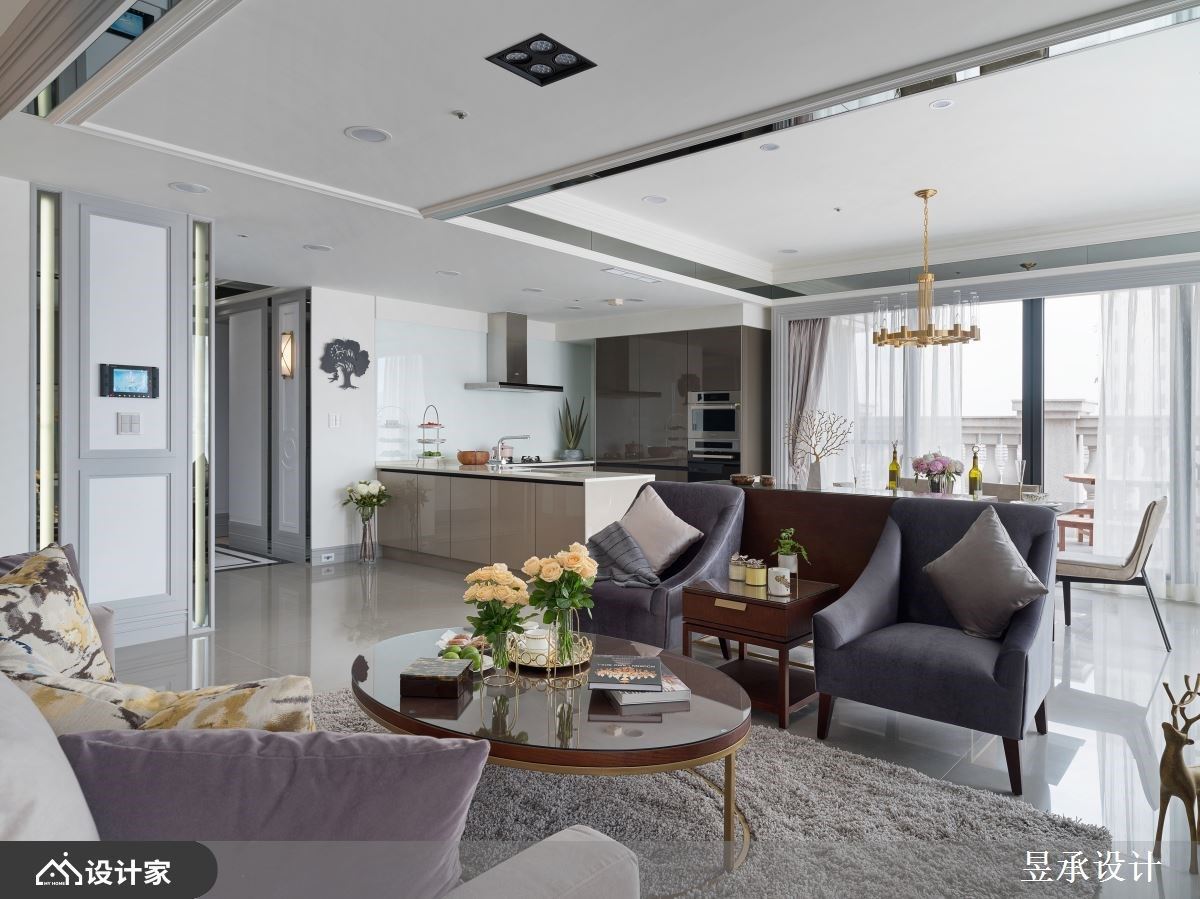 美式风新成屋以穿透式材质保有开阔,点缀大理石、镜面和线版吐露低调奢华的优雅气息