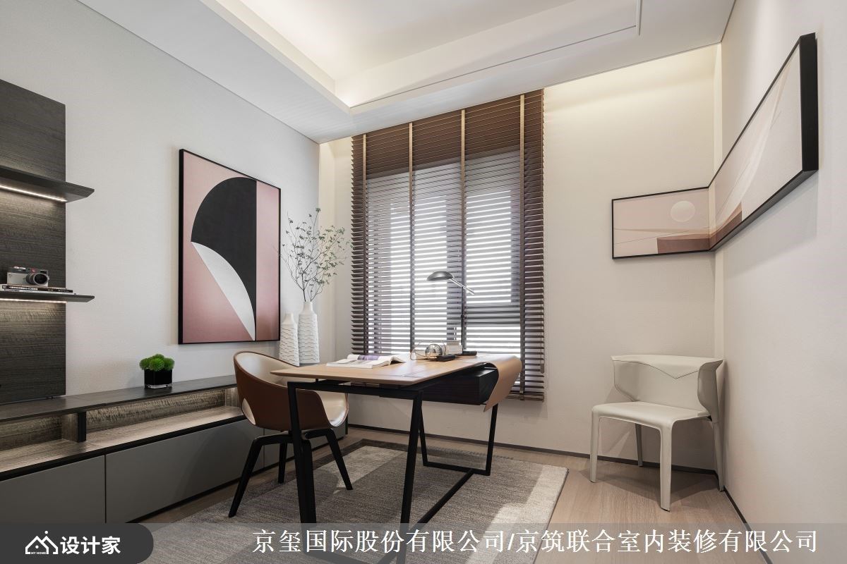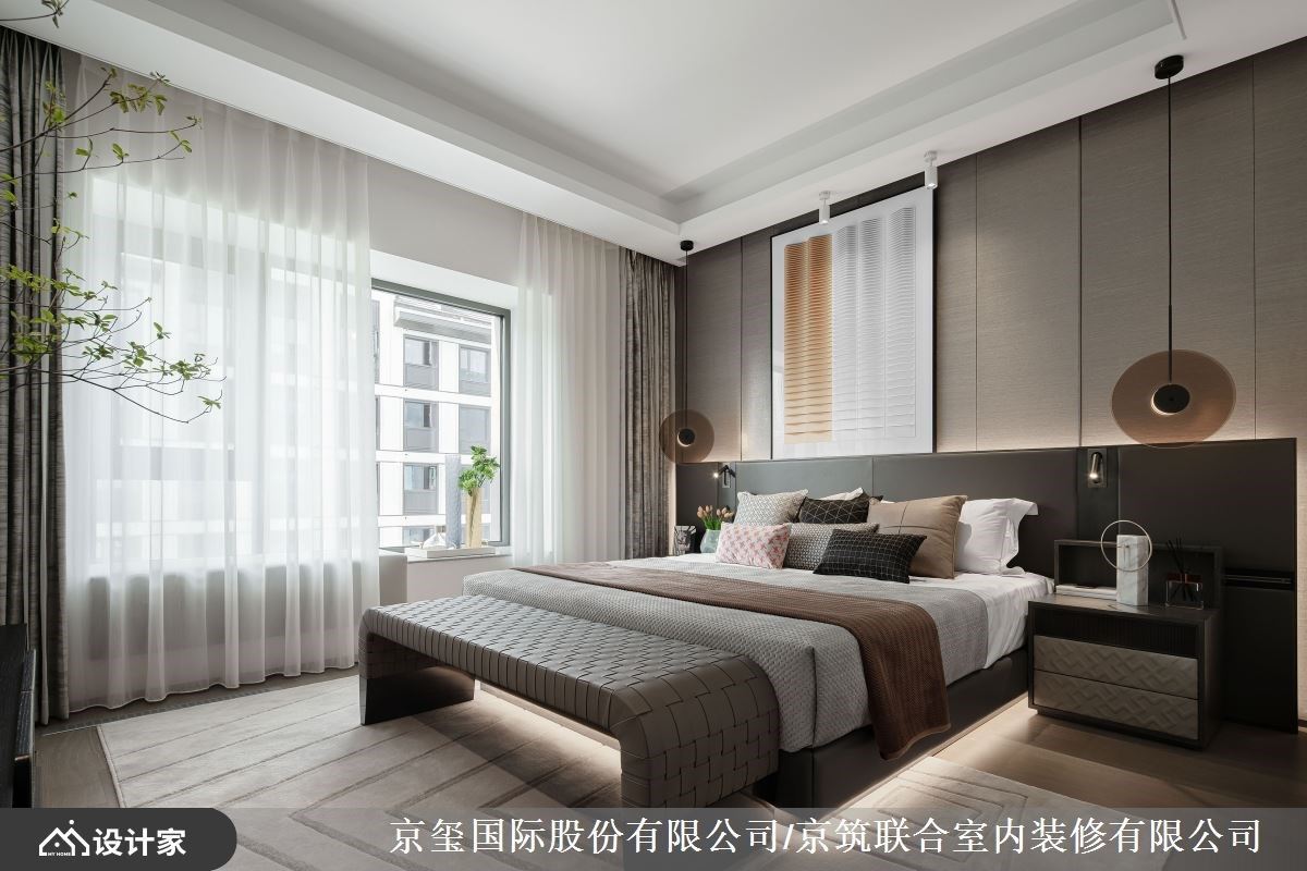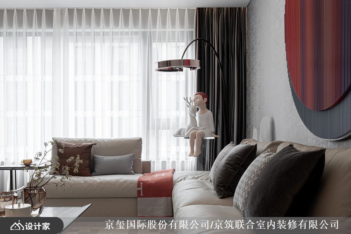 165坪的现代空间里,承载着事业有成的屋主夫妻,与成年孩子对现代生活的期待。师法艺术生活的精致风貌,掌握几何线条赋予空间的独特意象,并利用石材、木纹等不同材质,丰盈视觉层次与张力;且在多元而弹性的机能设定下,彰显艺术美学的内涵与实用体验,创造具温度的生活居所。 为呼应屋主对生活的讲究与品味,玄关空间特别打造开阔感的豪宅风范,深色实木作为视觉端景墙,在艺术画作与弧形边角的矮柜陈列下,展现具温度与和谐的生活想象。公领域藉由回字型动线规划,整合整体空间领域,纳入美学、机能、性格与文化艺术之美,且赋予开阔、流动且具秩序的视角;客厅里以木纹立面的电视墙为基底,沙发背墙铺陈仿石材纹理壁纸,搭配灰色几何线条的地毯、米色沙发,调合出自然朴实的温润气息。 客厅衔接至餐厅的壁面上,则铺设细致纹理质感的丝绸壁纸,伴随自然光转移与照明的变化,演绎浓淡的美学风貌;餐厅空间里以玻璃拉门弹性隔间,净白的餐桌椅安排与一盏简约吊灯,壁面挂上几何意象的艺术画作,材质细腻的堆栈与推演下,交织出兼具静谧与律动的优雅氛围。 小编的最爱 整体以灰、大地色系的渐层方式调和,随着材质间的细腻转化与场域转换,成就一幕幕有温度的生活感;整合各领域机能的使用,辅以植栽、布艺、陈设等细节布局,营造出具温润、弹性的美好居所。
