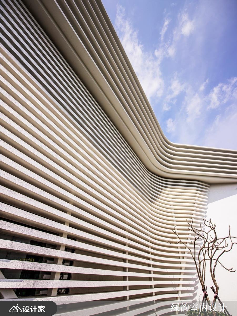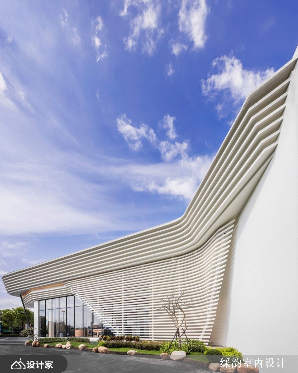 线条是建筑的语意,无限长的曲线宛如抽象的大江大海,在除了勾勒空间营销中心的脉络属性之外,同时去感受建筑的力道美感、建材与土地交织下而迸发的人文化记忆及一些更内敛的场域意涵。