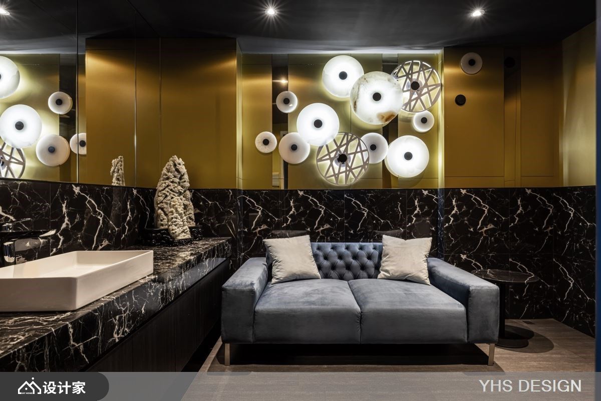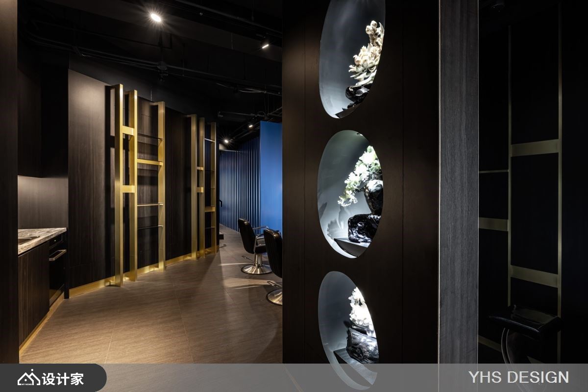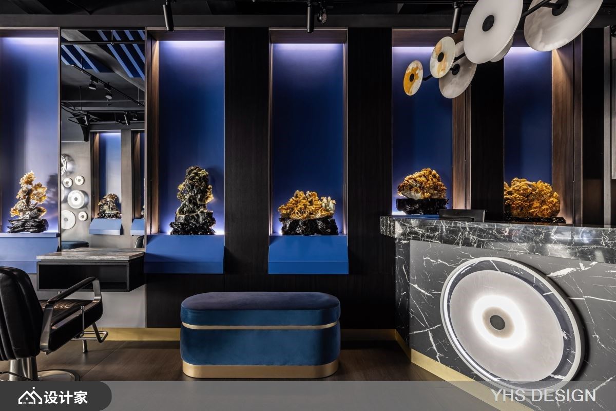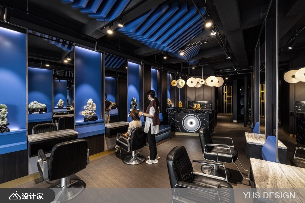 小编带你看好宅 老屋翻新改造奢华风理发店,设计师运用温润细腻、坚硬光泽的天然建材,并给予色彩、线条的对比穿插,搭配虚实穿透的语汇,展现丰富多元的视野,在强调装饰性与美观之余,也带出了工艺价值,快跟着小编一起来看看吧! 狭长空间中,加入通透的垂直线条,并规划折线型路径,在层层穿透之间,让人体会到温润自然石之美及工艺细节,并借着半透明光泽的细腻玉石妆点,令人犹如置身丰富多元的艺术殿堂,感受玉石的精细巧妙与稀少价值;整体设计将当代空间与工艺融合探索、反思与再演绎,将东方传统配色正蓝、哑黑、金色、酒红重新植入空间中,以深色木纹质理为基底,天然玉石与木雕艺术为装饰,借由灯光投射下的对比与透亮突显出优美与细致;而玉石的略透明之感,采以穿透手法融入于空间区划上,并运用透明的彩色压克力材与对称的铁件屏风,简单区隔出走道与美发区,使视觉通透却又明确分界,透过色彩配置与线条分割提升视觉效果,诠释人与空间丰富多元的当代之美! 小编的最爱 设计师大胆跳脱一般发廊的设计手法,藉由木皮、明镜、铁件、略透明的压克力、大理石、稀少性的天然玉石、木雕艺术、金属美耐板,予人新颖感受与崭新的记忆点,为空间注入独特的语汇与生命力,娓娓道出工艺价值对空间的亲密关系!