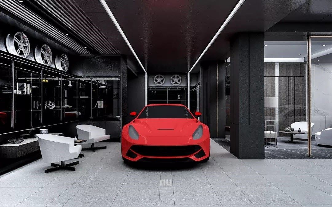 法拉利激情的引擎声,亦柔亦刚的线条,唤醒生命中沉积的激情;回到家宅之中,金属与异材质交织,光线均匀的照射,让车体的烤漆反射出高昂的情绪,充分满足男人心底最深处的热情。 简洁、利落的线条剪裁,光带带有指向性的律动感,明亮的光源透过光膜均匀地撒下,停车室顿时宛如来到参加超跑赛事的休息场地,唯有顶尖国际赛车手,才能进入的竞技场。