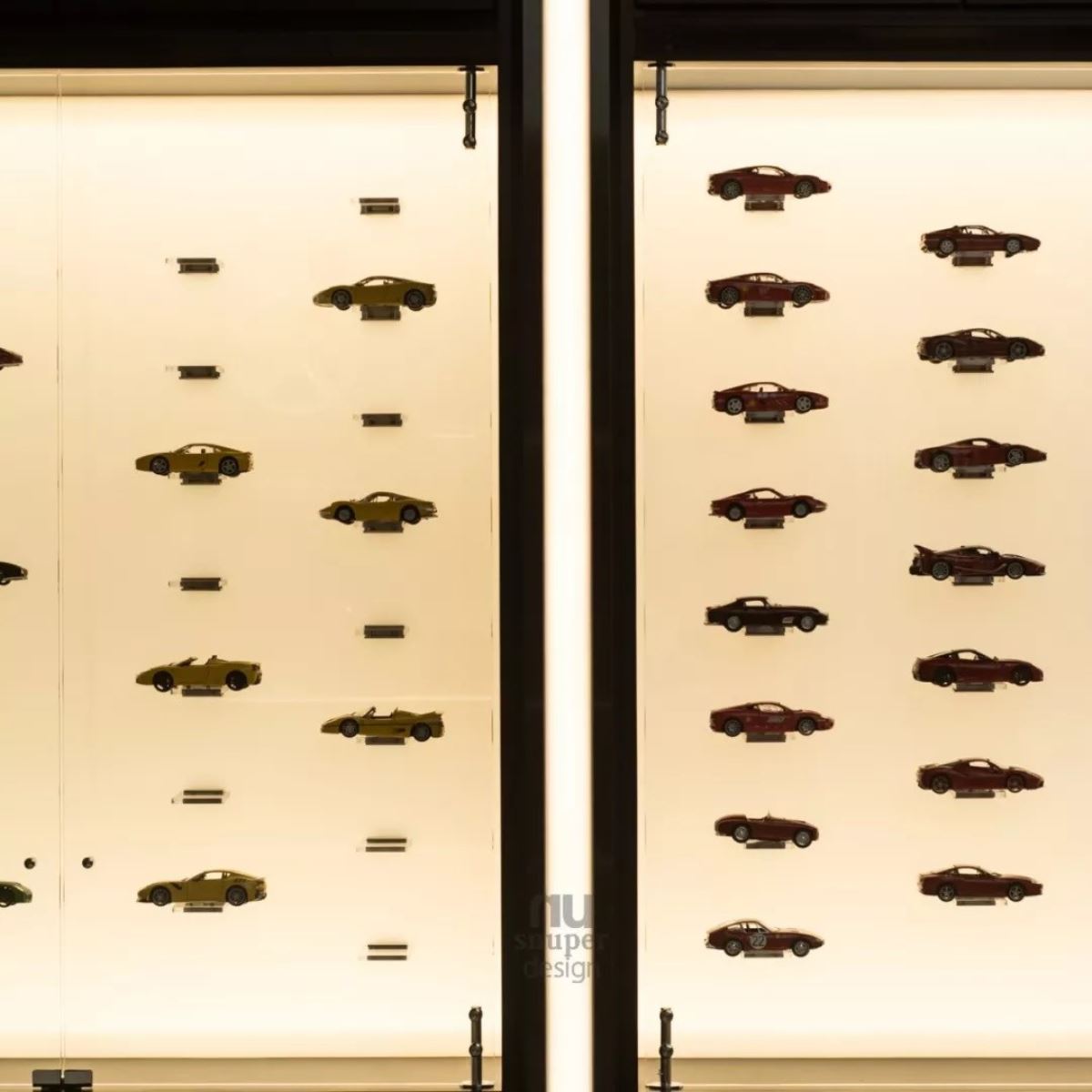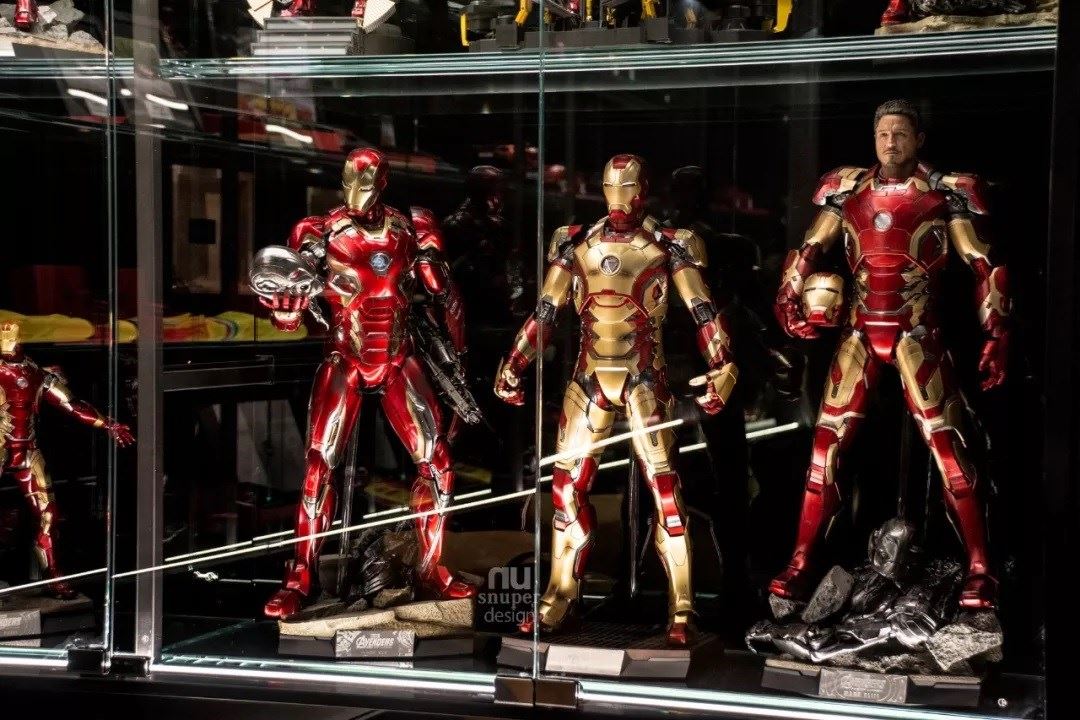 特别订制透明的压克力材质与光线配合,将男主人的汽车模型收藏和钢铁侠,依照大小比例依序给予适当的收藏位置。