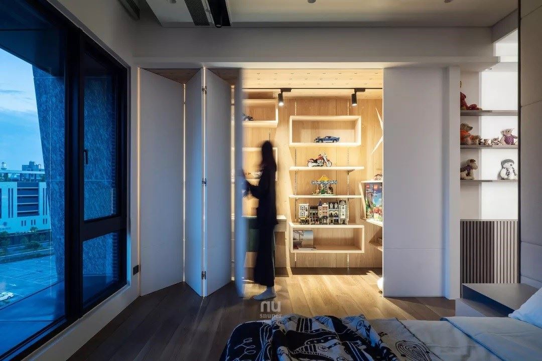 乐高贵就像百宝箱,对居住者来说是抒压、疗愈的存在,收藏柜安排的位置大多在大型工作桌的附近,如果有事先和我们沟通、提供收藏对象的高度,那就可以依据高度和需求量身订制。