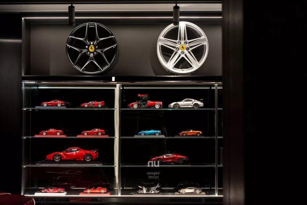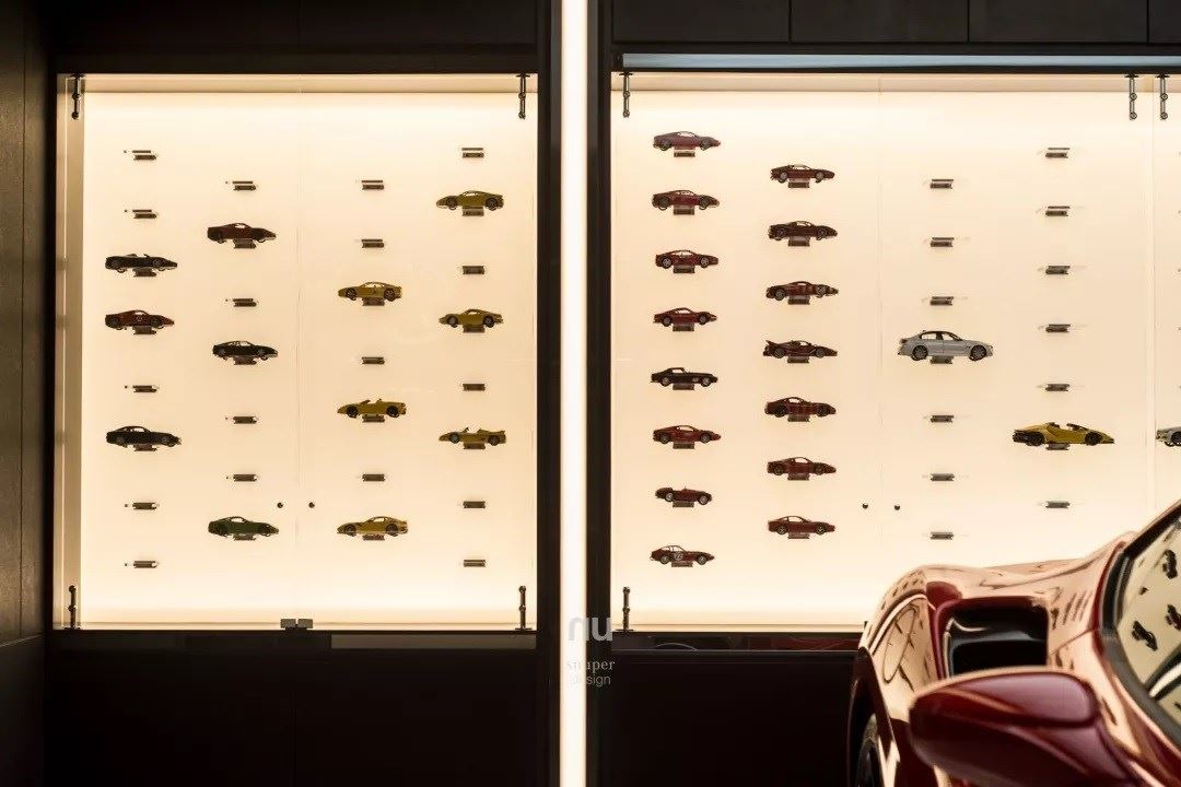 为了让男主人喜爱的车款模型得以更好的展示摆放,订制透明的压克力底膜,结合后方均匀地衬光,宛如来到汽车模型博物馆,充满乐趣、将收藏极致奢华的表现。