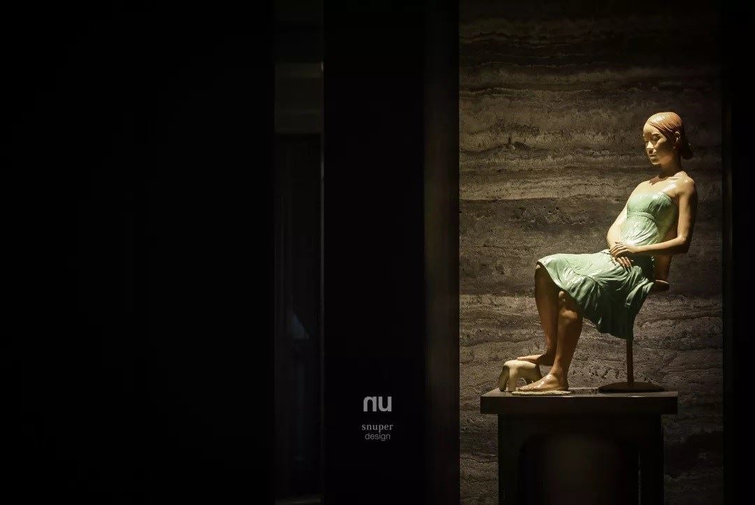 大理石墙面也是非常好装置艺术品的去处,云墨般的纹路成为最具意境的背景。