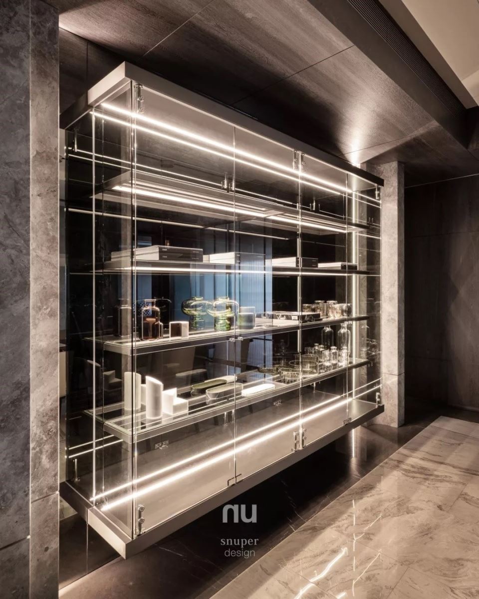 开放式展示柜,可根据心情、购入的不同藏品的时机恣意更换变动,既为私宅专属的展示橱窗,绝不疏漏最前线的时尚潮流,同时更成为空间中的精彩端景。