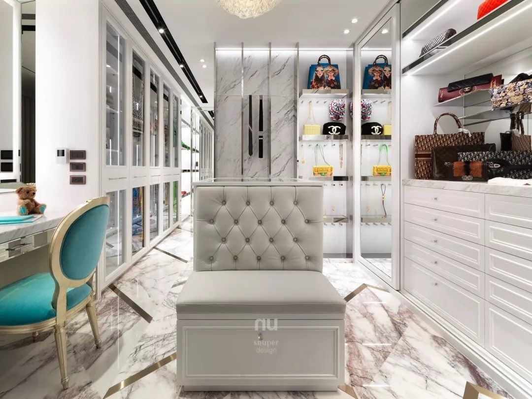随着个人需求订制的更衣室,按照每样精品的高度、大小打造专属的柜体,让腕表、珠宝等,从大至小的对象都能有所归宿。