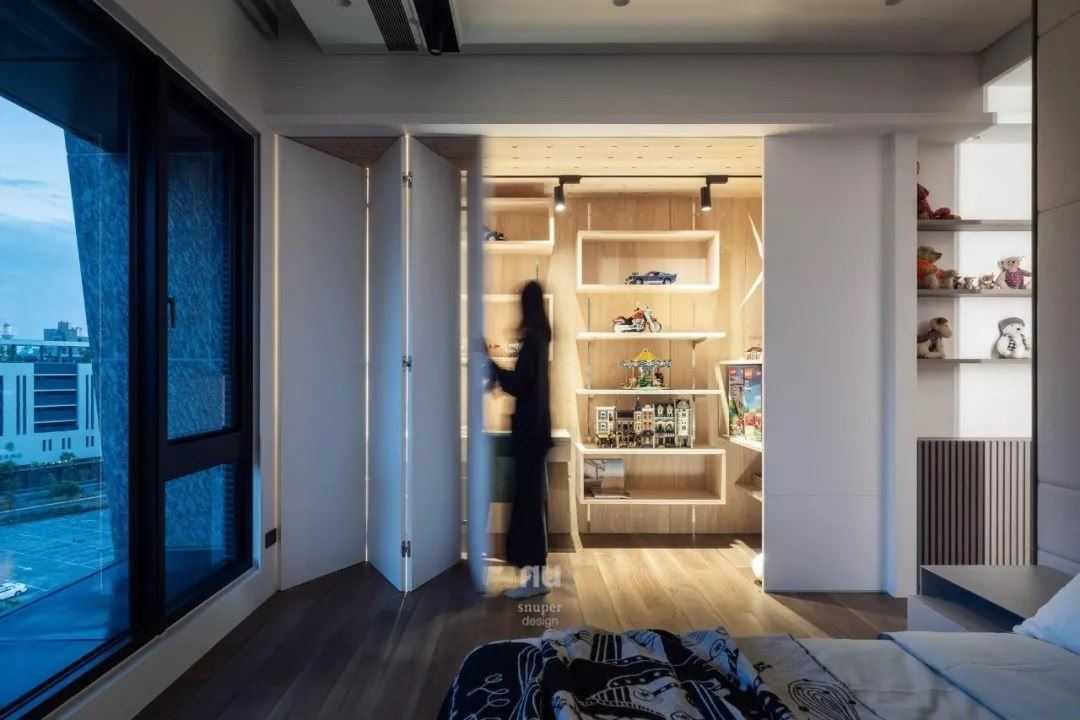 乐高柜就像百宝箱,对居住者来说是抒压、疗愈的存在,收藏柜安排的位置大多在大型工作桌的附近,如果有事先和我们沟通、提供收藏对象的高度,那就可以依据高度和需求量身订制。