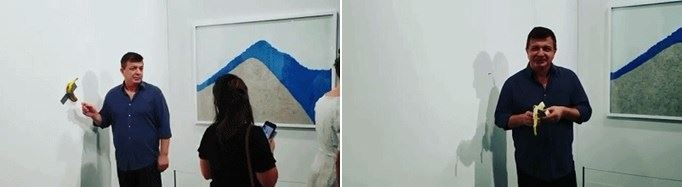 近日就有件标价 12 万美元的“胶带香蕉”的艺术品火遍艺术圈,但却在迈阿密当地时间 12/8 下午 1:45 左右被一个叫大卫·达图纳(David Datuna)的行为艺术家摘下来吃了……