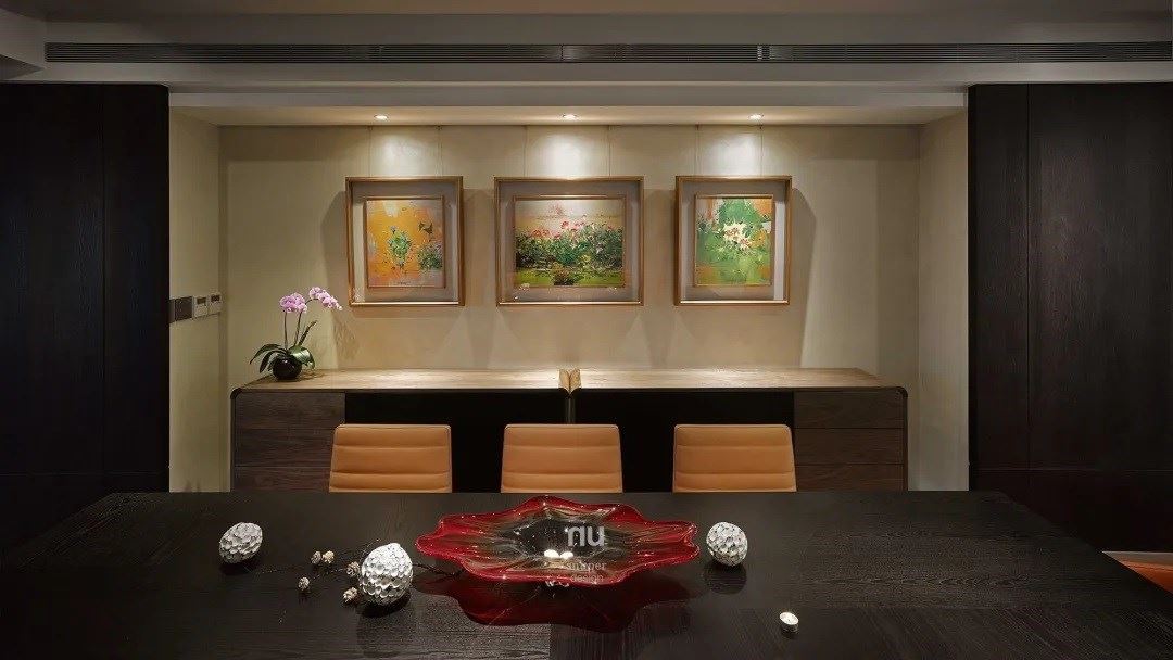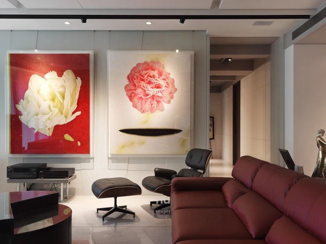 缀以珍藏画作,描绘多维度的视觉思维,更添时尚感并显露现代生活的优雅。留白的设计语汇,让艺术品更为意气风发,在属于自己的角落中绽放光彩。无论是以石材纹路为基底的背墙、让木质包覆住的壁柜,甚至是手工涂抹的画作墙,细腻却低调,作为展品的背景,功不可没。
