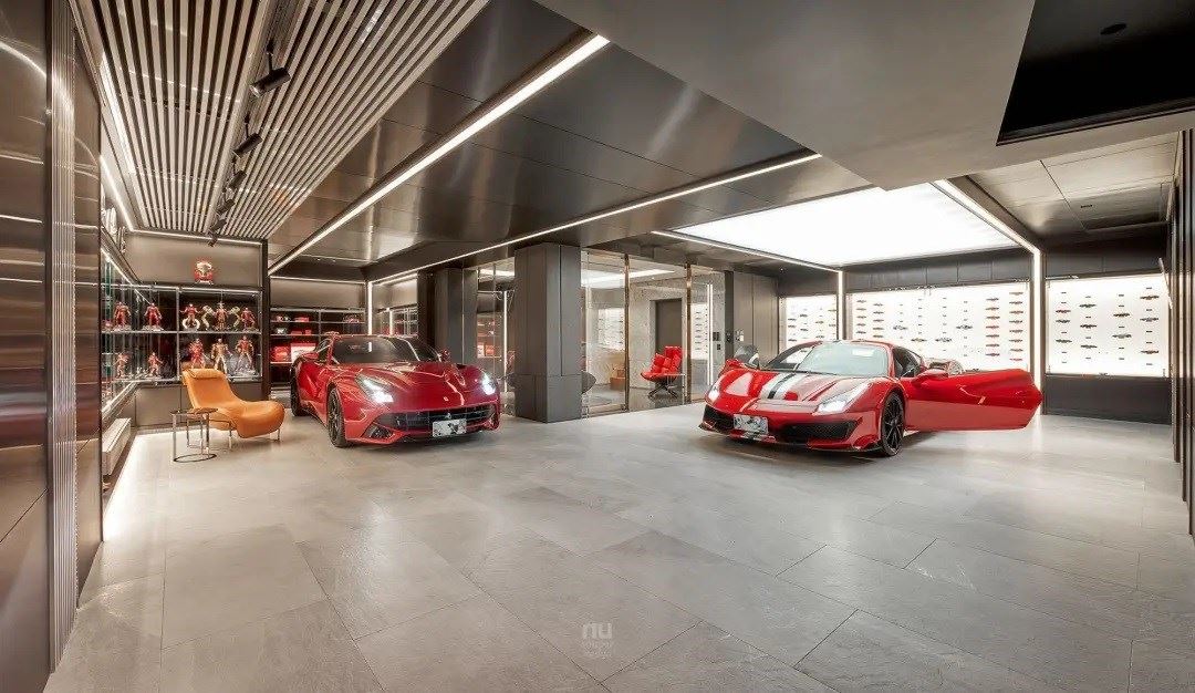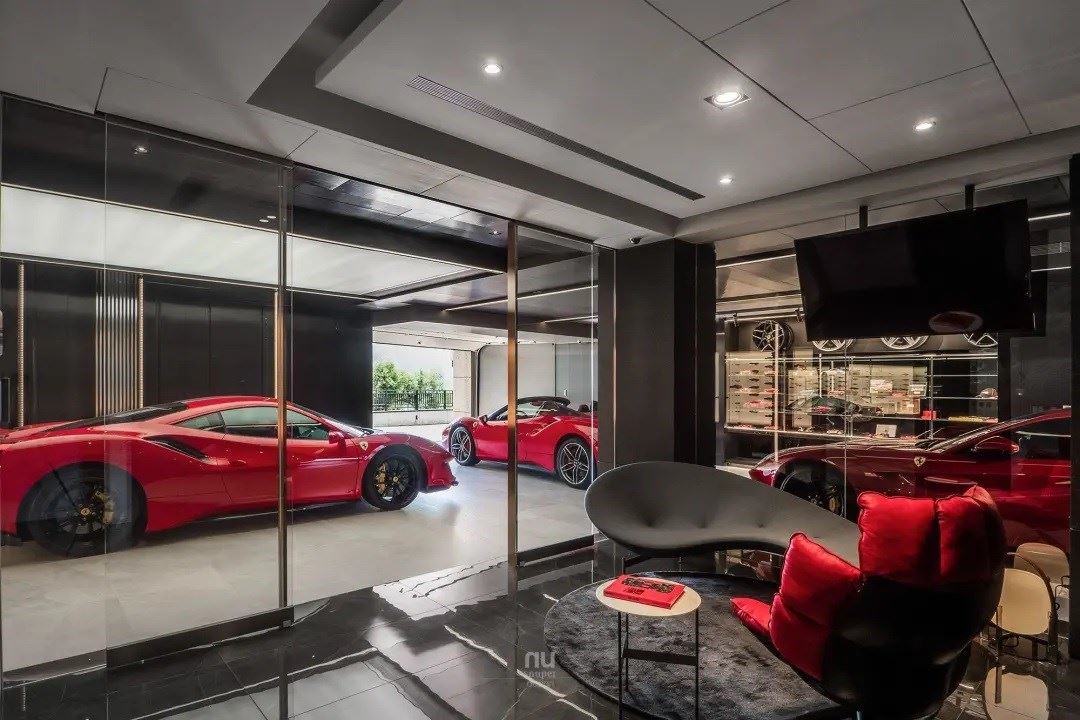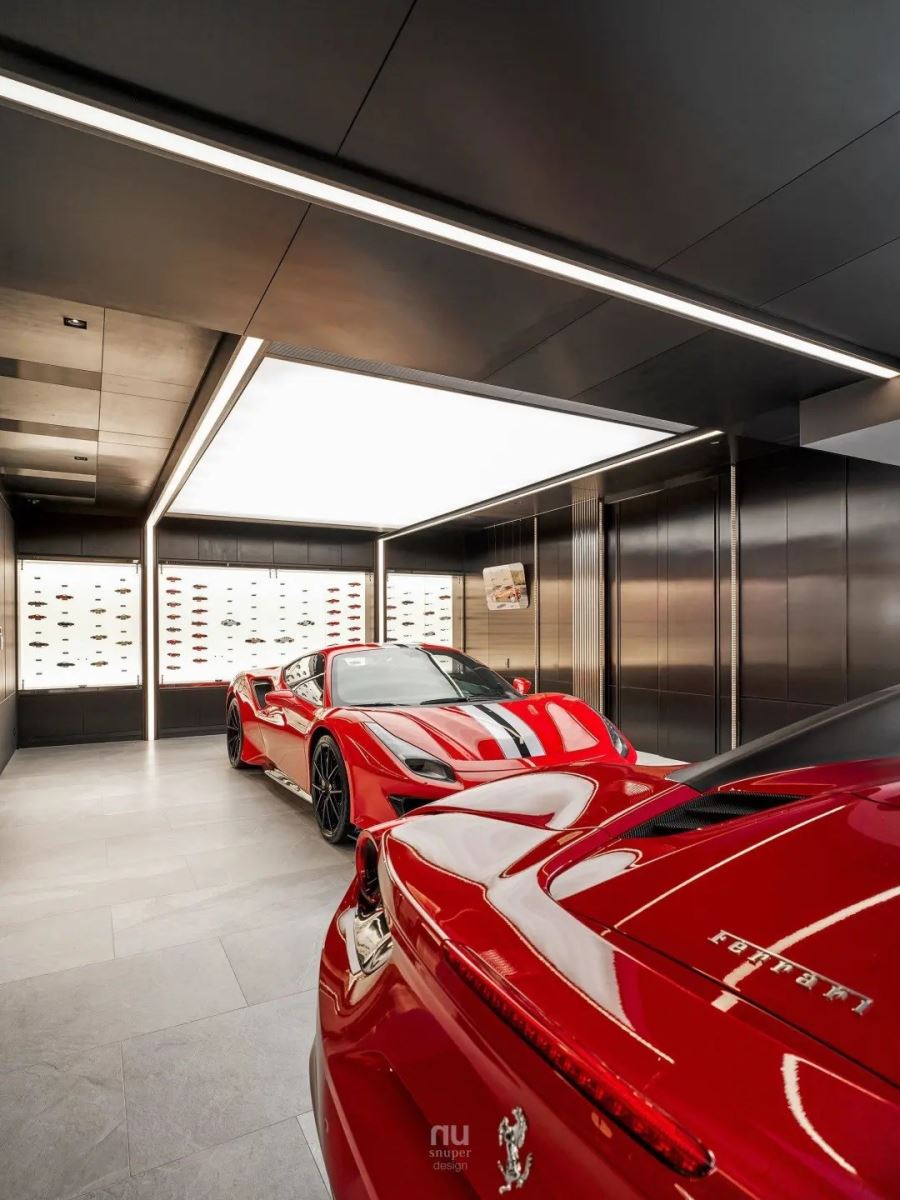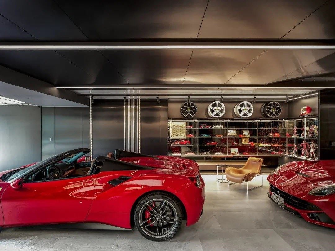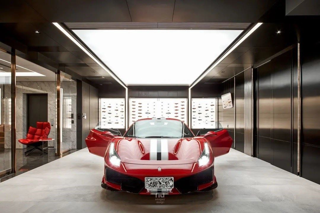 车库不再仅是车库,法拉利激情的引擎声,亦柔亦刚的线条,唤醒生命中沉积的激情;回到家宅之中,金属与异材质交织,光线均匀的照射,让车体的烤漆反射出高昂的情绪,充分满足男人心底最深处的热情。