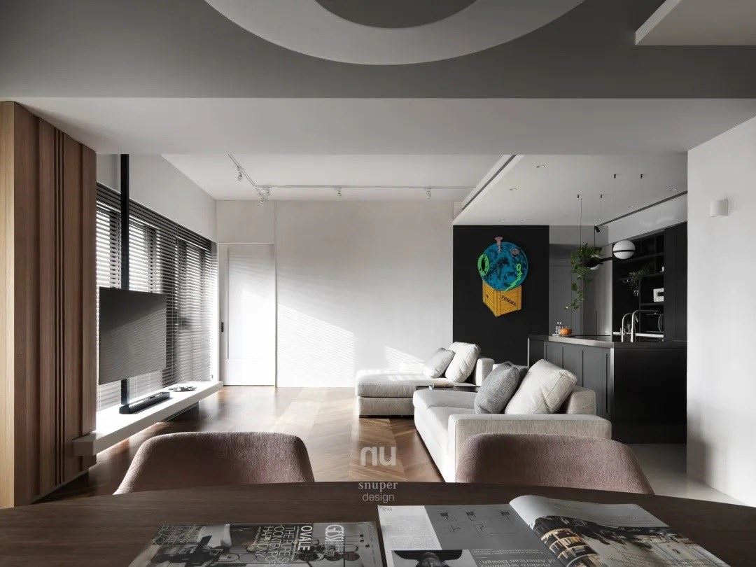 在都市喧嚣中,与生活展开深度对话!158平米现代风新成屋以材质与光线书写诗意留白