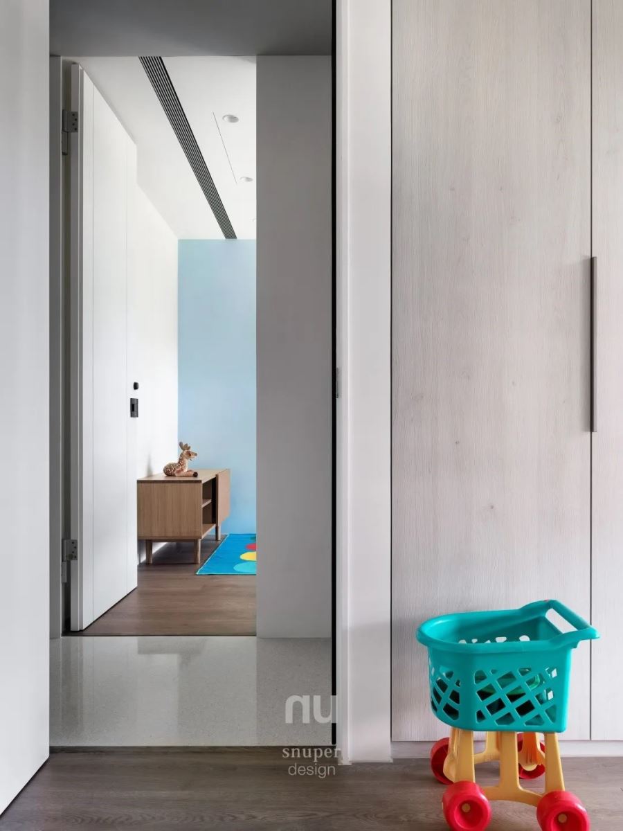 以爱填满的留白、弧形宣示对家人的温柔!从法式玻璃拉门到霓虹灯音乐室,将孩子喜好揉入 108.9 平米现代亲子宅