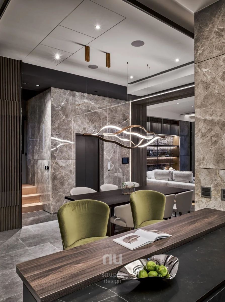 设计总监林政纬认为:「设计让情感变得可视。」餐厅区域成为了家的中心,既为生活型态的转换、也是亲人情感凝聚之处,在时代的洪流中,餐厅区域契合人们现在的生活方式,通过设计之力关注每分每吋的细节,整合奢华与适宜居住的环境,实现迷人的情境。