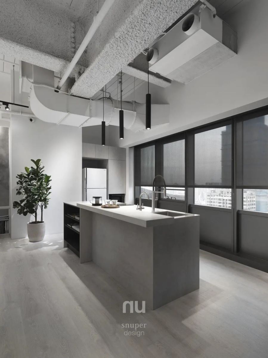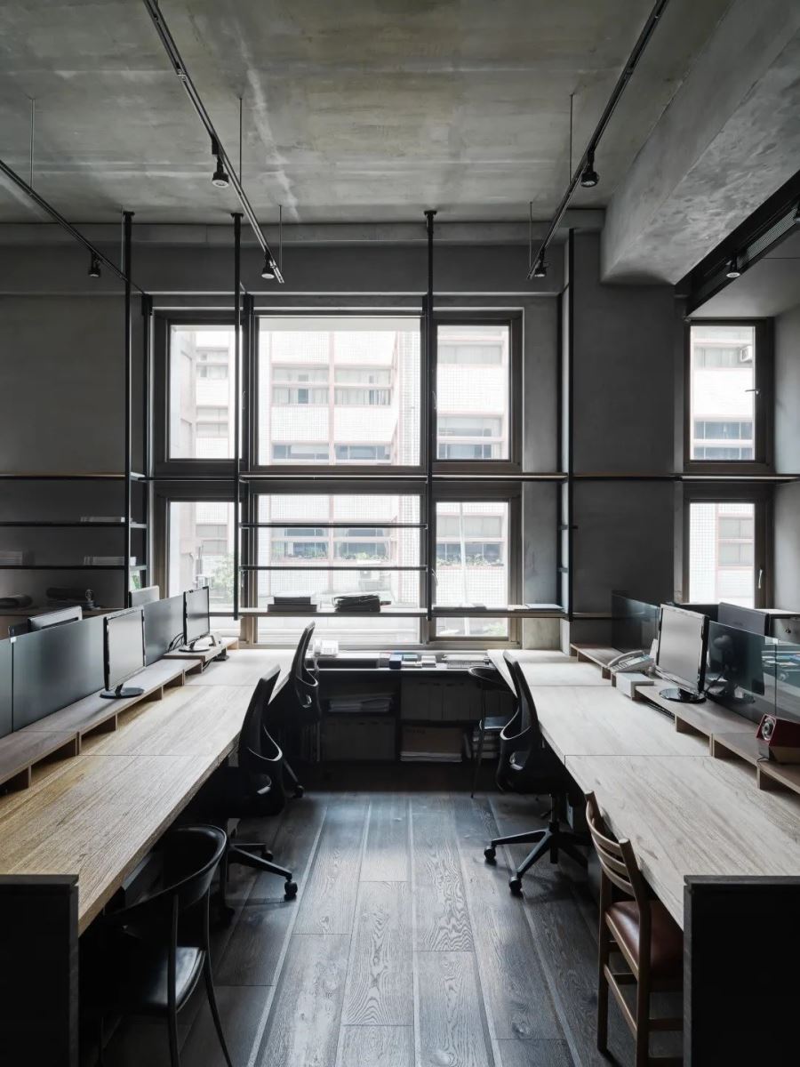 工作场景的既有样貌持续被颠覆,通过抽离、再思考工作环境的定义,如何才能使空间拥有更多可能性?考虑空间条件,往内延伸出一条长型廊道,延窗面则设置在空间的最底部,光线随着太阳的东升西落,在这空间里不断轮回变幻着。