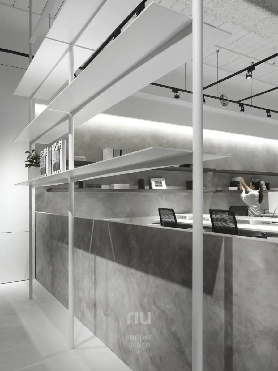 大雄设计的办公室继台湾台北办公室以“裸”为核心意象,梯厅玄关保留原有的混凝土墙面和 RC 天花板,营造成白色纯净的 Gallery,脱离办公空间既定印象,塑造与世隔绝的独立感。