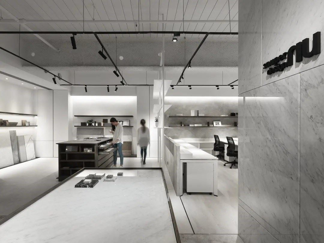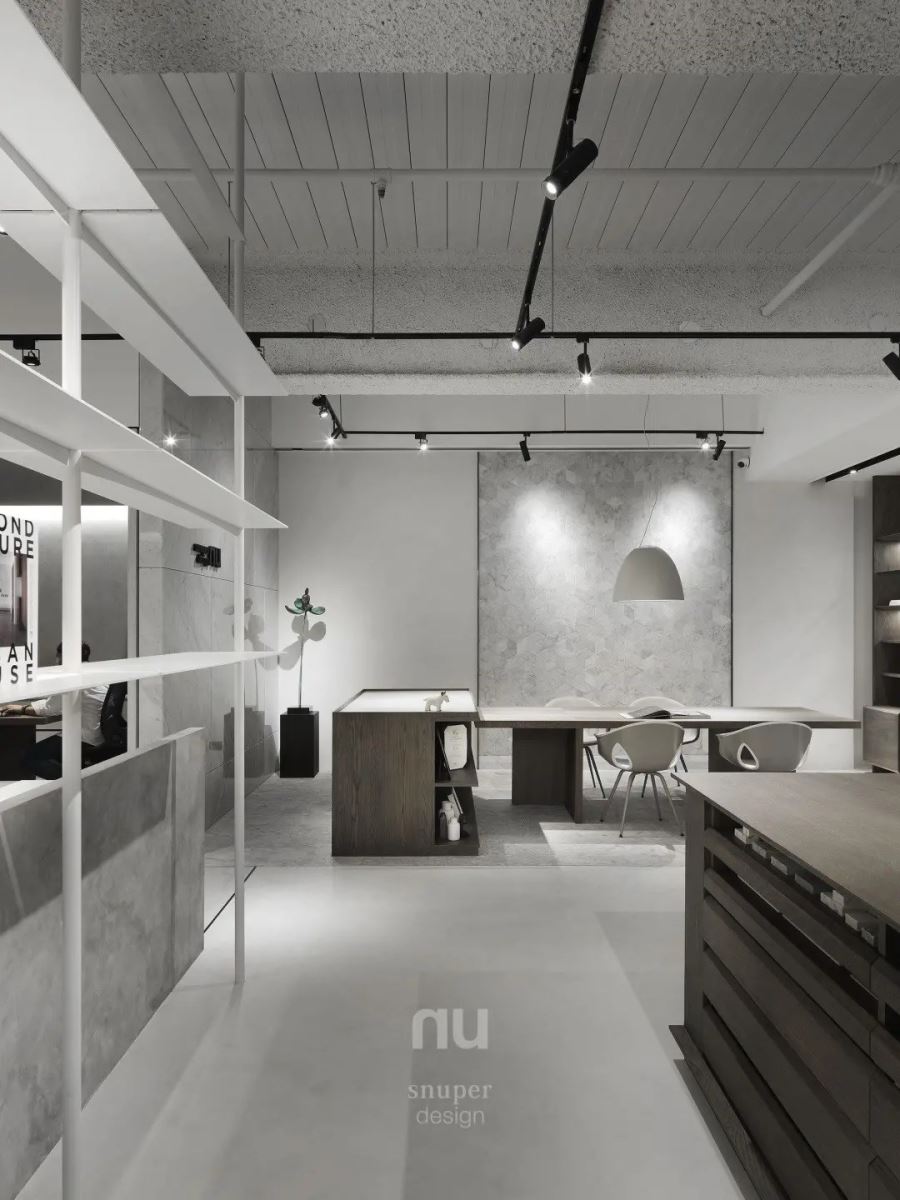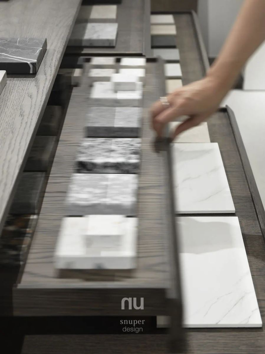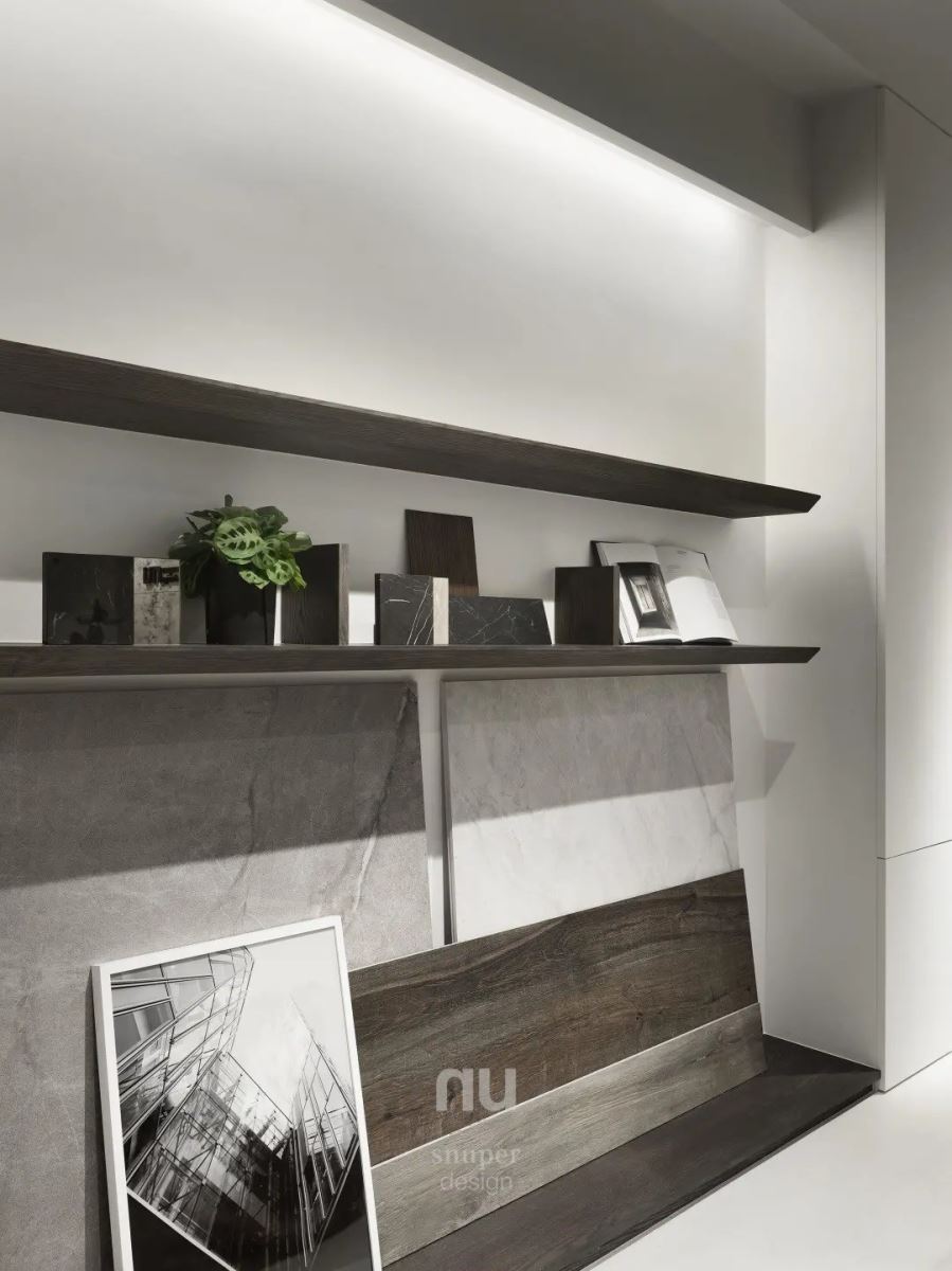 材料中岛: 主要作为材料展示及收纳区域,能给客人直接看材料以及考虑到设计师收纳需求,是更为直观的设计方法。