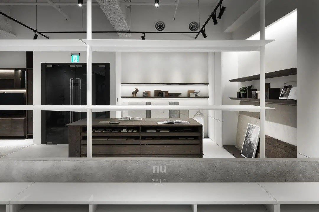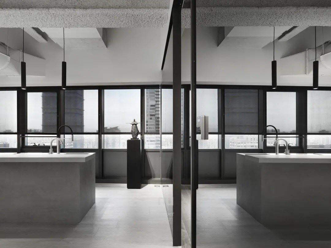 新近完成的台中办公室,以“白”为主角,与“灰黑色”为主体的台北办公室,形成强烈的碰撞,一黑一白的对应、材料和格局的呼应,最终都回归于白与黑的视觉统一,让品牌精神有了延续。