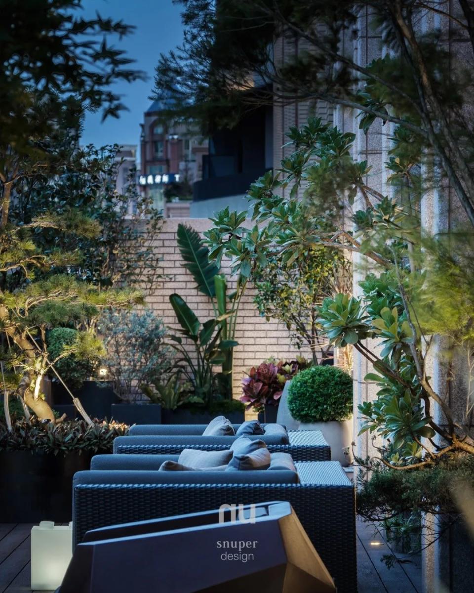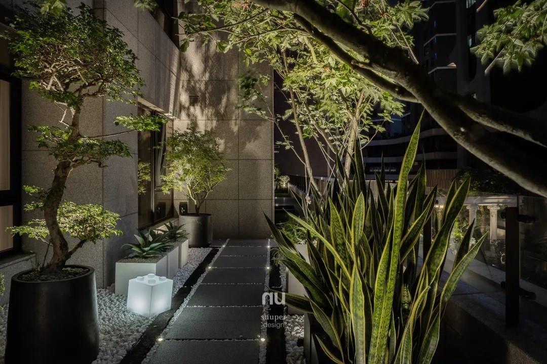 所有盆栽的种类、高度与型态经过精心挑选,随着空间的铺排逐渐变化更迭、混搭着不同种类的树种,像是客厅区域的观叶植物、孝亲房前的松柏等。 我们相信“永恒”的创造不是过于费力,而是自然绿意与设计彼此呼应的层次关系,观照人内心的真实所需,照看城市未来,高端生活亦是精神居所。