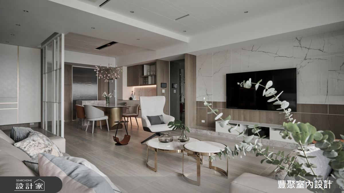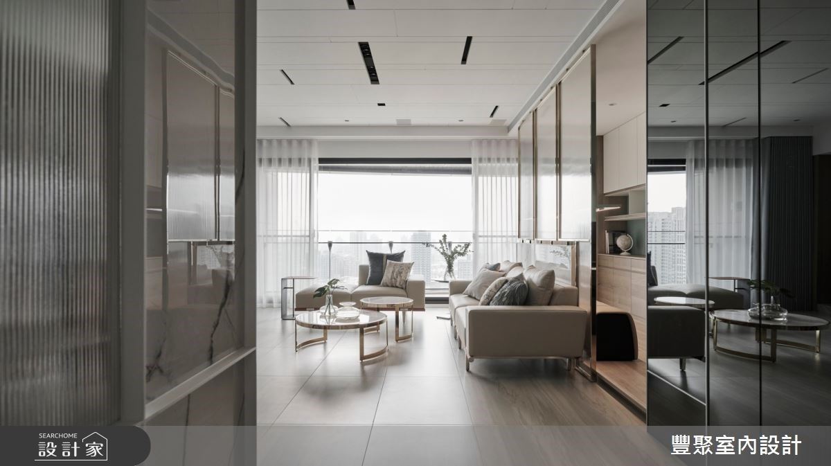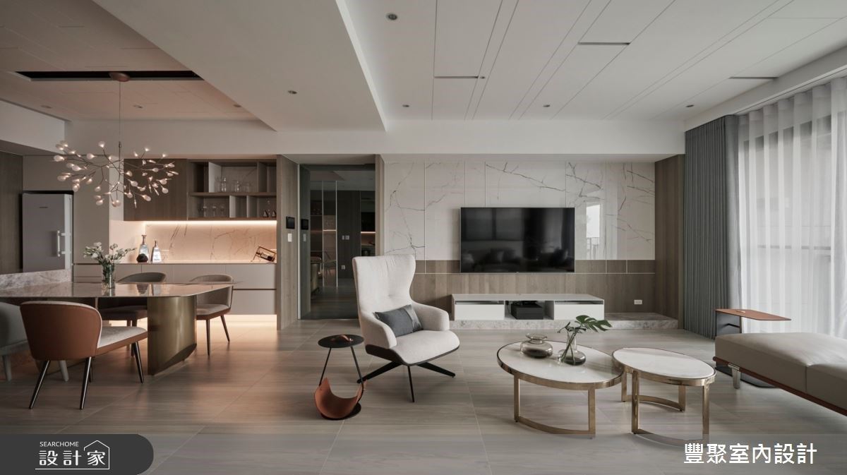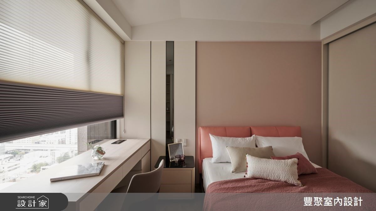 44坪现代风宅内,空间色彩以浅杏色为主调,诠释出一家四口温馨甜蜜的生活意象,同时巧妙地结合窗景与室内空间,让屋主尽情享受远眺绿意的惬意自在,丰聚设计 黄翊峰、李羽芝两位设计师,透过精湛的设计巧思,在居家空间内满足居住者需求,同时融入一家人对于美好生活的期待。