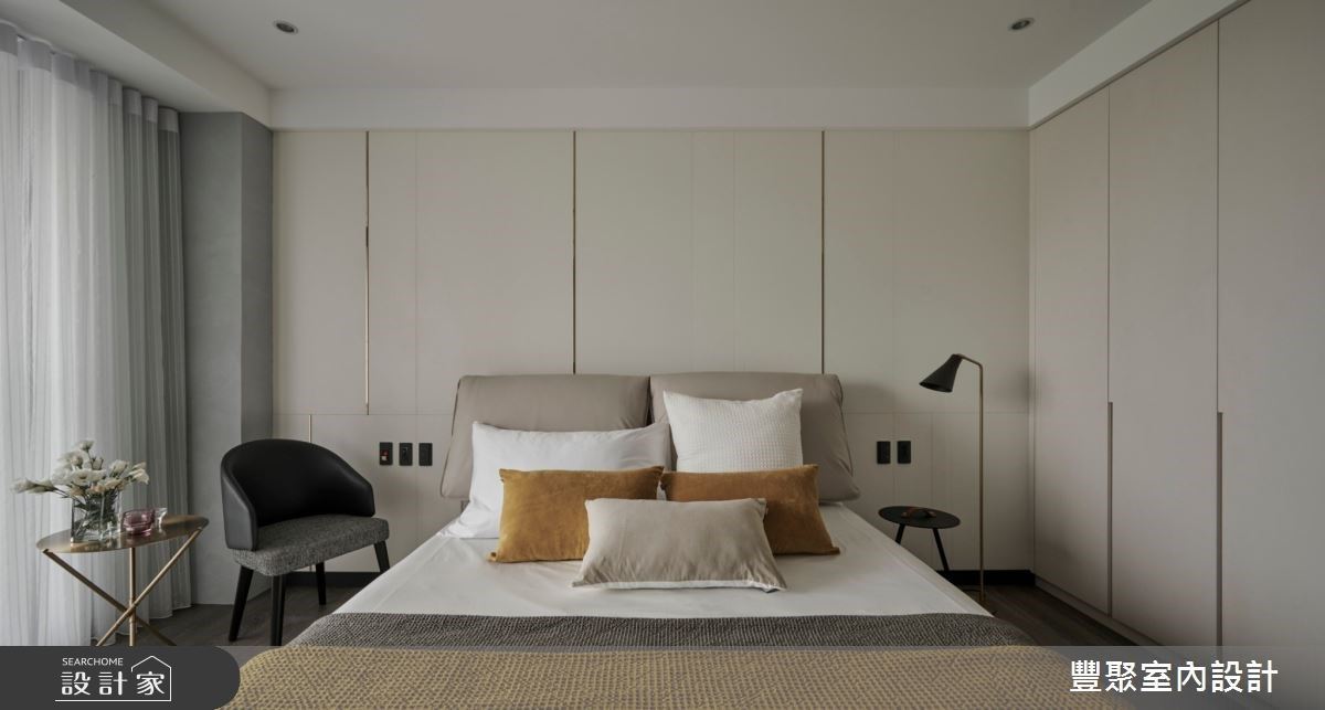 卧房空间延续公领域的现代利落感,同时运用相异的墙面色彩,展现鲜明的空间个性。