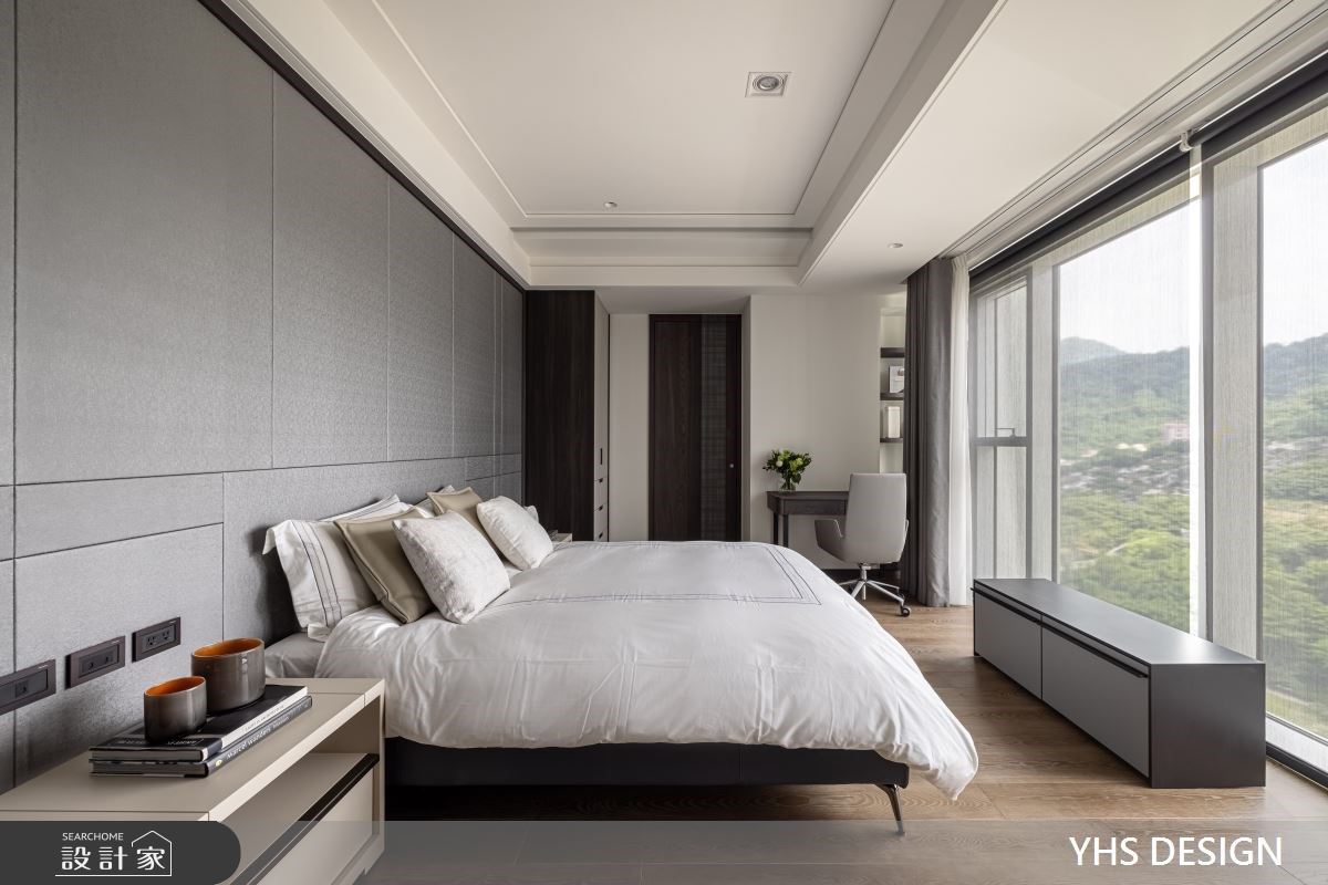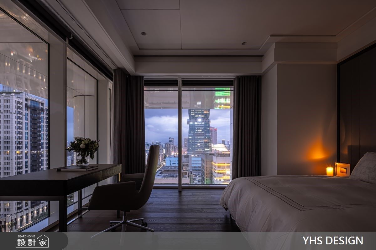 寝卧空间内的大面窗景,让绿意采光走入私密的个人时光,夜晚品酒时更能俯瞰城光夜景,尽享独处时的惬意自在。