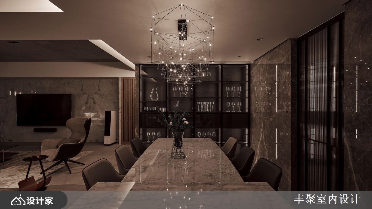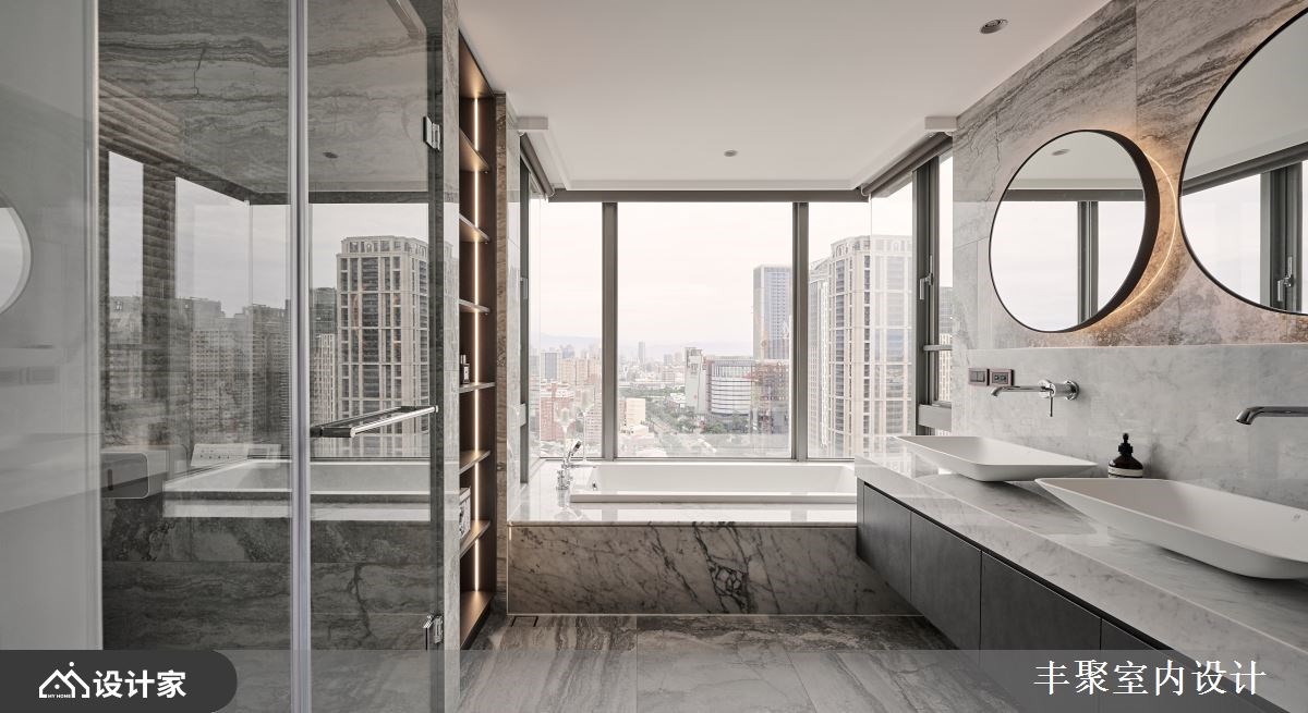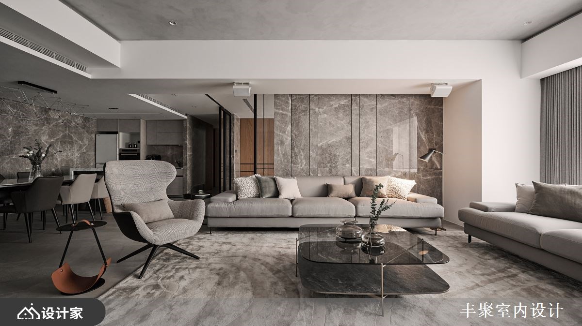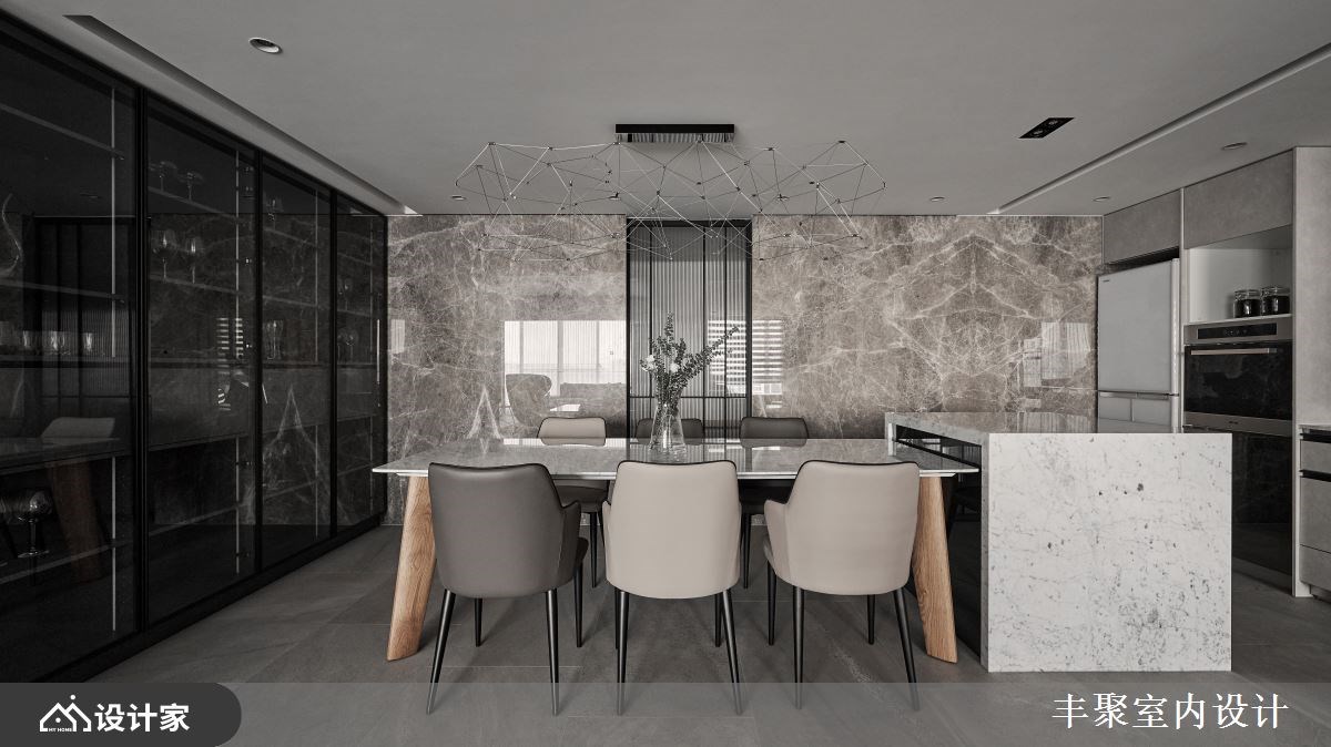 改造指南 1. 公领域如何营造轻奢华感? 2. 餐厨空间怎么创造出亮点? 3. 面对闹区噪音该如何解决? 设计师这样做 198平米现代风豪宅的男主人,希望屋内保持明亮宽广的样貌,同时也期盼跟三个儿子玩在一块,享受放松生活,因此设计师巧妙应用优雅的石材,为感情融洽的一家人,打造一眼就爱上的景观宅邸。 设计师在玄关区,规划木质收纳柜及穿鞋椅,一进门就立刻感受到家的温度。公共空间采取大量的石材墙面,包含安格拉珍珠石材、雕刻白石材,搭配装饰意大利特殊漆的天花板,令人陶醉于轻奢华的居家氛围。而简约利落的沙发家具,以及时尚的视听设备,让全家人可以轻松看电影聊天。 为了擅长烹饪的男主人,餐厨空间利用自动门,划分出内外厨,强大的日本进口厨具、机能中岛与升降烘碗机,让男主人更有动力,在星空般的璀璨灯光下,端出一道道美味的佳肴。多功能室以通透的玻璃推拉门,隔出父子假日打电动的架高区域,推拉门能随时切换空间开阔度,又不阻挡窗景。 小编的最爱 考虑到住宅位于城市闹区,卧室加装了木作封墙、隔音棉和气密窗,减少外界的噪音问题。大面窗的浴室则设计双洗手台、泡澡浴缸,让美景与盥洗紧紧相伴。