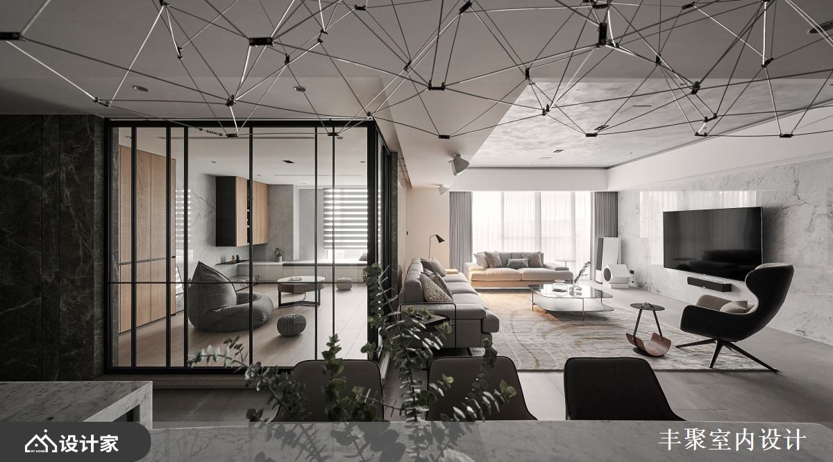 迎接景观的放大感豪宅!半高的升降电视墙界定宽敞格局与动线