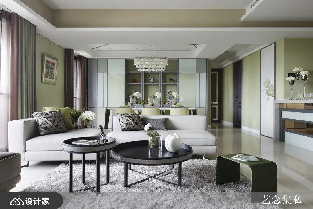 色彩搭配上的邻近色带有和谐的变化,艺念集私空间设计张绍华、黄千祝总监在常见的木质元素与白墙之中基底之上,可以大胆地加入喜好的颜色,透过墙面、家具或灯饰等存在于空间的设计中,让家里的色彩更丰富却不会紊乱。像是亮黄色与橘色和棕色相近,也带有希望与活力的意象,因此存在于木质空间里十分匹配,只要拿捏好在空间的占比反而会是住宅的亮点。同样的颜色也可以透过明度与彩度的变化,像是降低彩度拉高明度的黄带有柔和感;带点灰色调的绿则是凸显质感,是好搭配又百看不腻的莫兰迪配色。