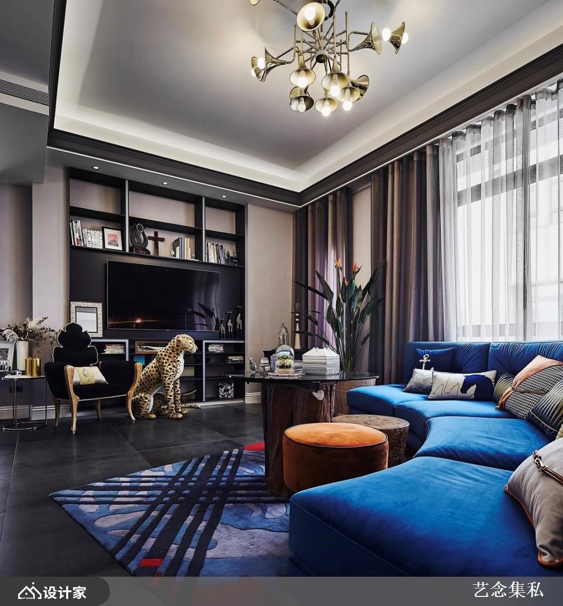 大自然中的蓝天与大海,都有助于开阔身心和舒压放松,而蓝色的变化非常丰富,透过明度与彩度的细微调整,或混入黑色或绿色都能带给人截然不同的氛围。艺念集私空间设计张绍华、黄千祝总监擅长运用蓝色做变化,创造时尚的豪宅风格,带点灰黑调的普鲁士蓝以绒布沙发诠释,透过家具舒压的功能性让深色的蓝拥有舒压的感受。蓝色也可以借由壁画的方式呈现,让图腾去凸显蓝色里舒心的调性;而房间则选择轻柔的天蓝,移植仰望天空与遥望大海的平静心情,营造舒眠自在的环境。