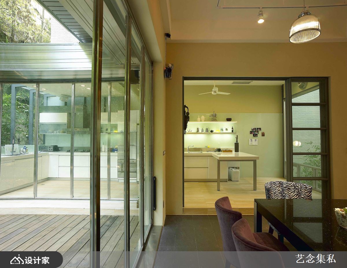 都市生活有着便利的生活和交通,但缺乏疗愈人心的蔚蓝海洋与山林美景。艺念集私空间设计张绍华、黄千祝总监在规划都市住宅或透天别墅时,非常重视室内与室外的链结,除了尽可能将采光引入室内空间,在前阳台空间透过植栽和盆景将自然的绿意带入都市住宅,同时也能修饰看向窗外的景致。另外,独栋透天的露台空间规划加入休闲躺椅、高脚吧台等度假宅常见的软装家具,让都市生活有接近自然的媒介,舒缓现代人高压紧绷的工作日常。