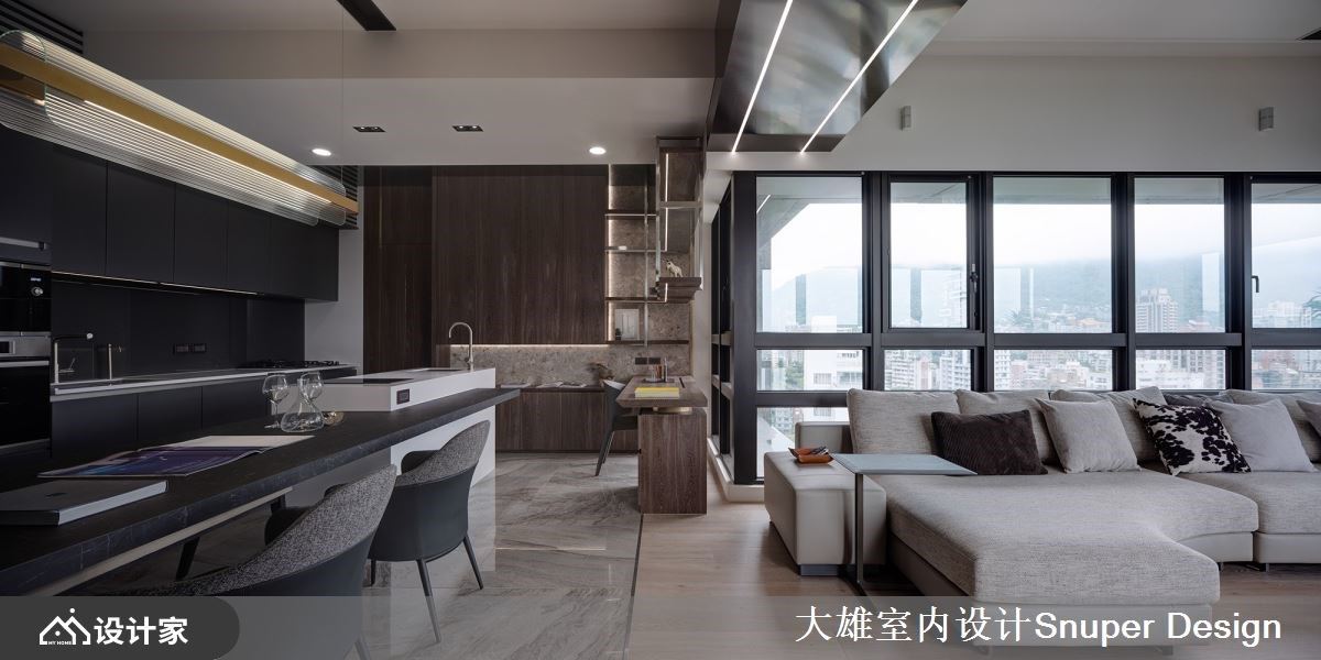 迎接景观的放大感豪宅!半高的升降电视墙界定宽敞格局与动线