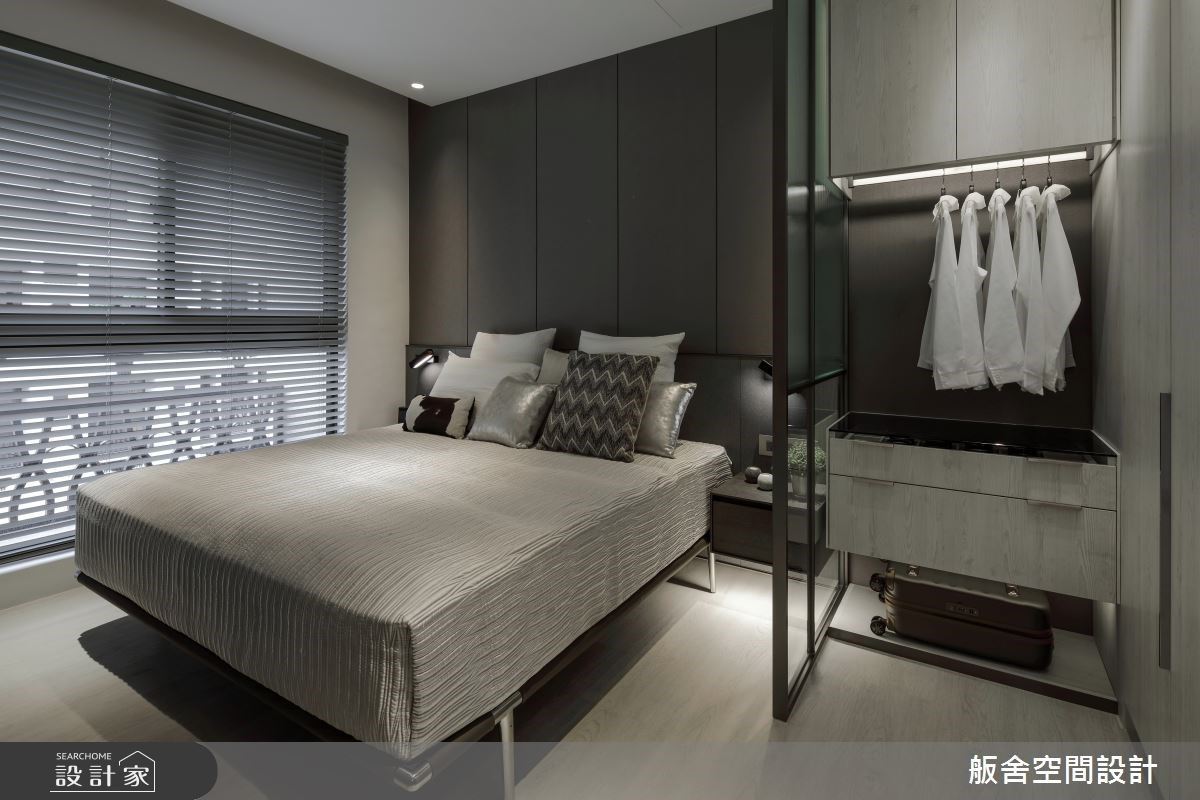 主卧室于床头侧边增设造型屏风,明确区隔衣柜收纳及寝居空间,更升华了睡眠时的安稳感受。