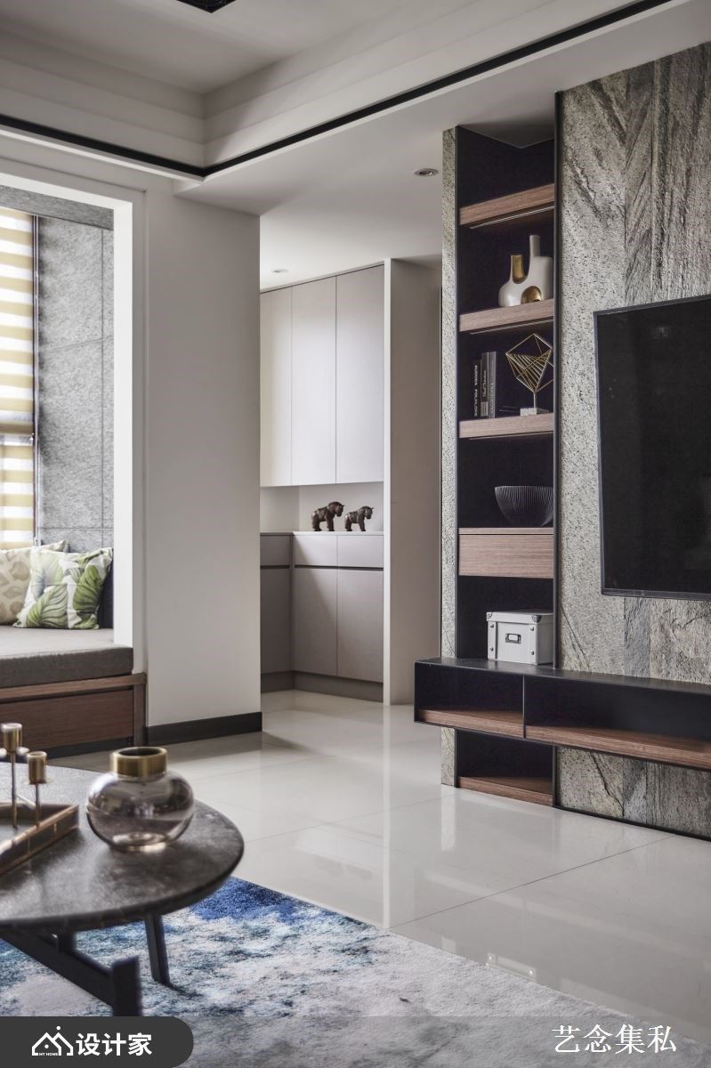 空間與居住者之間,透過室內設計師搭建起這座通往彼此內心的橋樑,讓屋主在家的每個角落,都找得到生活的縮影。 要在固定的坪数中放大客厅区域,设计师将沙发墙稍微退缩,并延展电视墙尺度到餐厅区域,有效创造出公领域宽敞的空间感。利用结构柱产生的畸零空间规划深坐面窗边卧榻,可作为客人来访的座位席,也能悠闲地卧躺放松。除了挪动沙发墙,更运用木皮与石材延伸搭配,在视觉上拉高客厅与餐厅的整体性,有效放大公共区域。