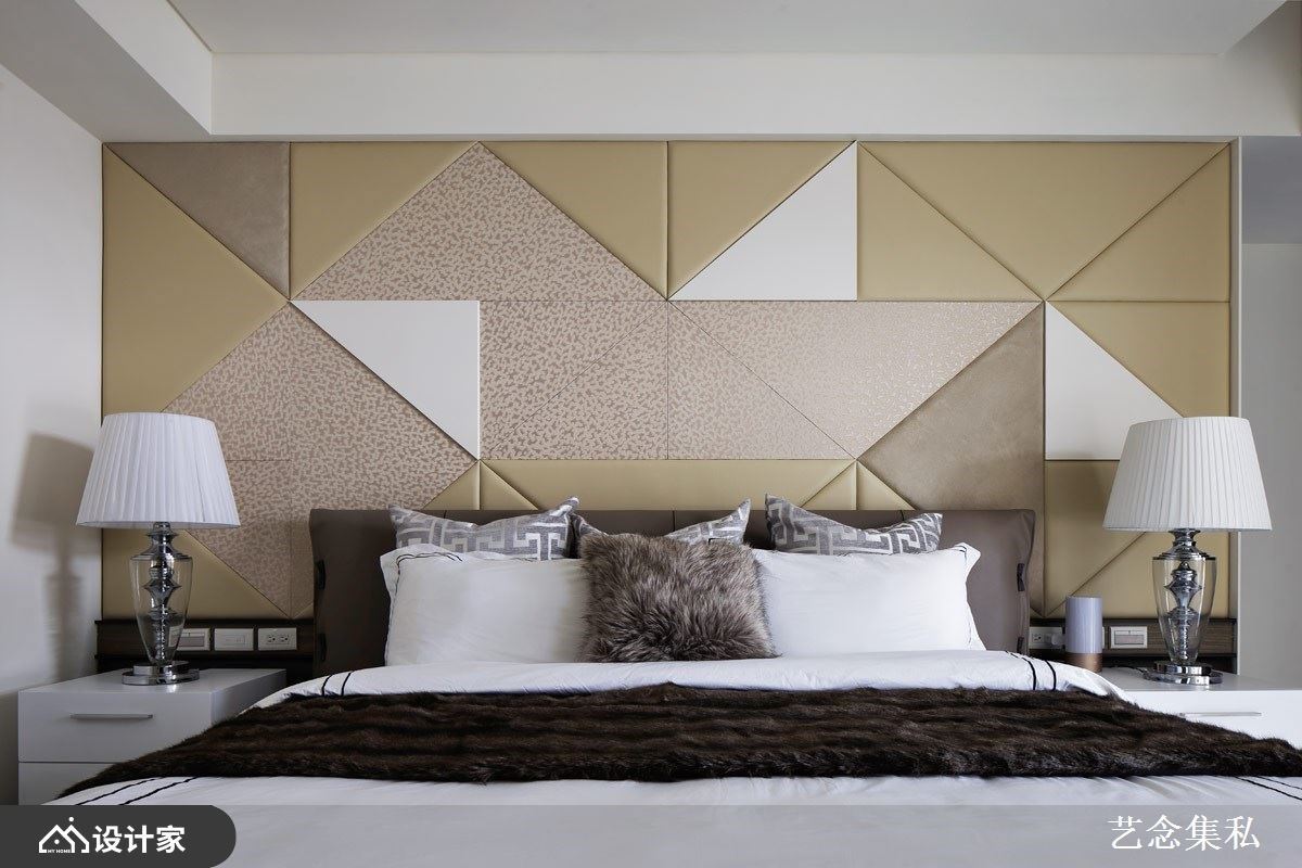 美的形式原则中包含了十项:秩序、反覆、渐变、律动、对称、均衡、调和、对比、比例、统一,其中几个项目都在描述着设计的和谐之美。艺念集私空间设计张绍华与黄千祝总监掌握此设计要点,在卧室空间内的床头主墙中以简单的方格设计为概念,借由异材质的拼接、反覆的图腾、跳色或同色系的搭配诠释舒适简约的视觉感受。比起运用大量装饰性设计的睡眠环境,恰到好处的立面装饰反而更能凸显空间的质感,减法设计下也能呈现寝居空间最需要的留白感,搭配舒适的床边走道与隐藏式收纳设计,让设计成为历久弥上的舒适体验。