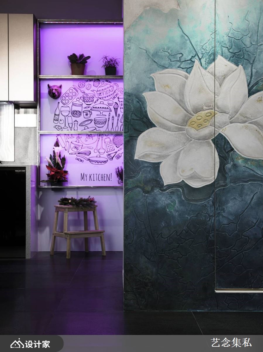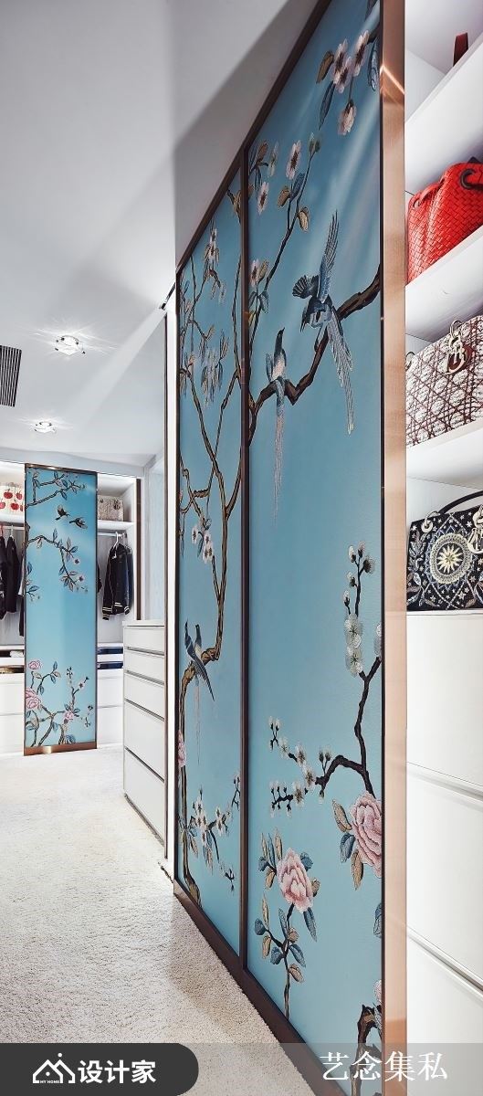 想要摆脱罐头白墙设计,不一定要整个墙面铺设墙纸或者使用涂料,艺念集私空间设计张绍华、黄千祝总监将墙面视为画布,透过彩绘的方式将墙面变成一幅巨型的艺术创作,聚焦玄关或廊道,化不起眼的空间成为唯美的居家端景。也可以在梯间或者墙面透过挂画或特色收纳,展现屋主的收藏与喜好。另外,大胆地使用涂料装饰儿童房,轻松营造孩子喜欢的风格外,也能随心情或季节变换想要的气氛。