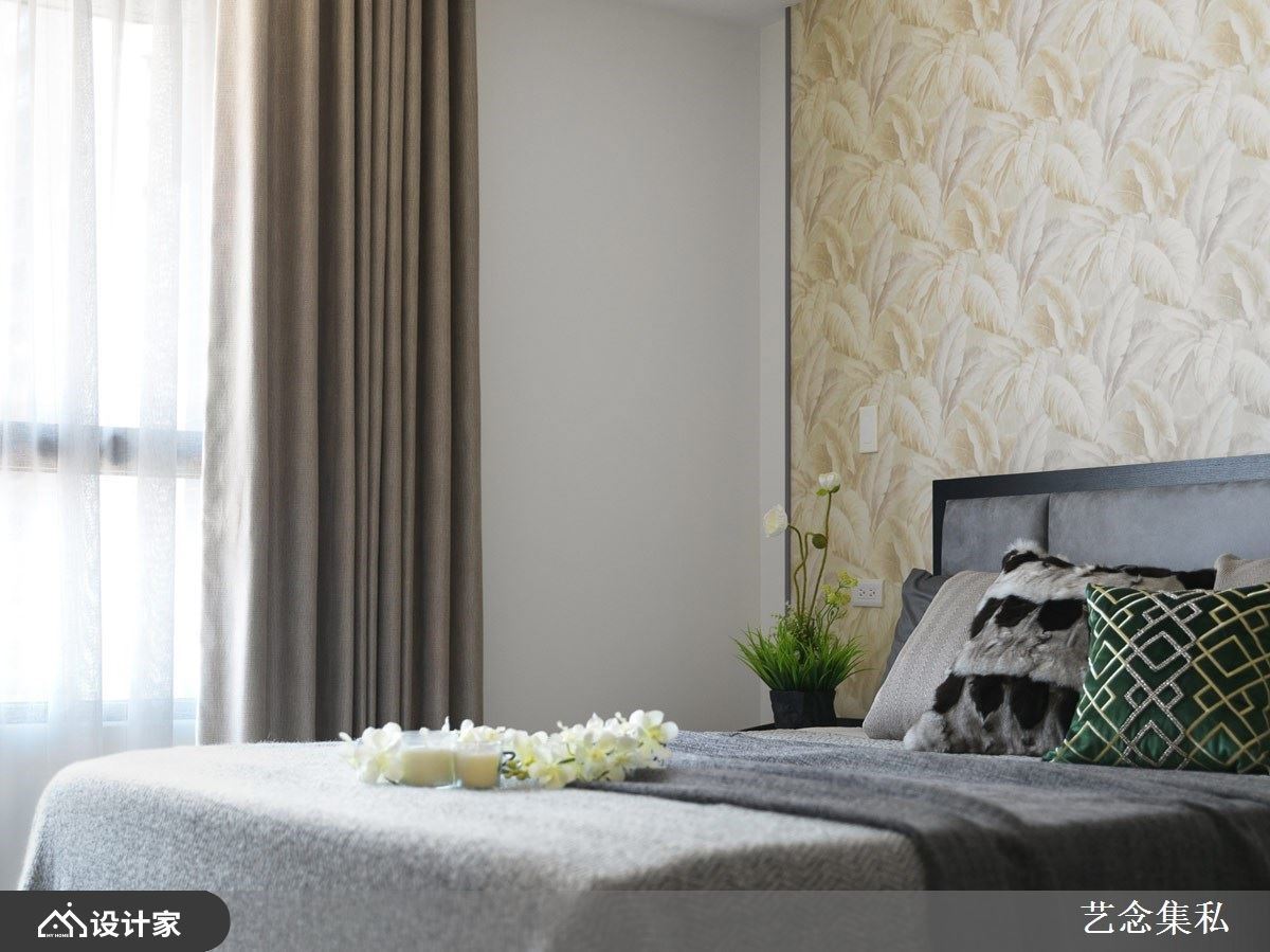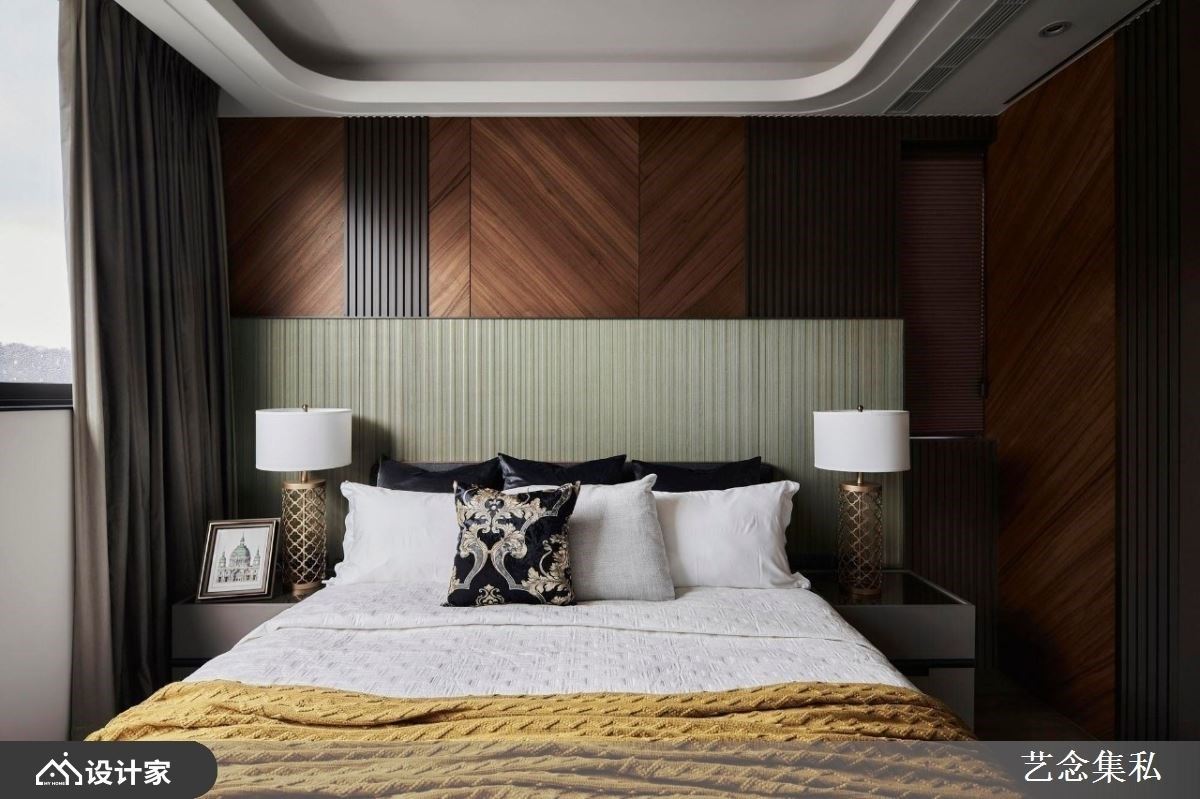 大理石与原木是装潢设计里常使用的建材,但是单独使用时很容易流于千篇一律的设计。艺念集私空间设计张绍华、黄千祝总监在使用石材、原木与镀钛金属等常见材料时,会运用混搭的概念让ㄧ样的材质能拥有丰富的变化性。米色大理石形塑雄伟的客厅形象,透过层次堆叠搭配上金属灯饰;卧室床头墙运用原木与铁件混搭,不同的几何拼接创造视觉端景,原木床头染上淡雅的紫保留木纹节理,搭配线板装饰,水墨纹理石材在灯饰的照耀下,将墙面幻化一幅风景画。